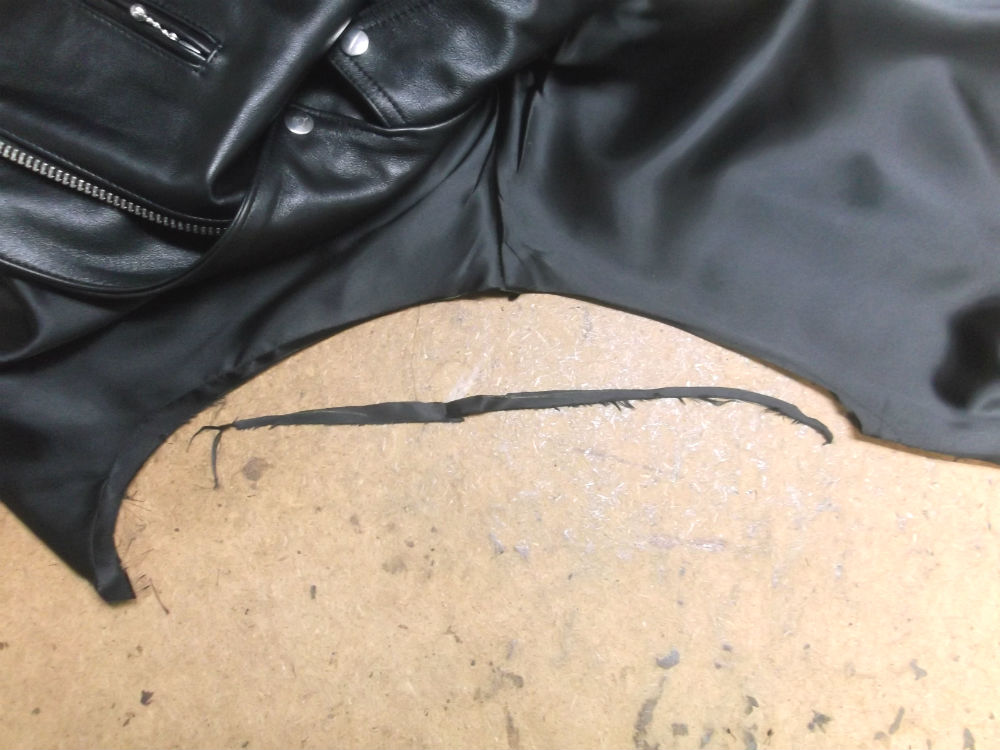 16枚目は袖山から袖丈のレザーをカットした後の写真です。