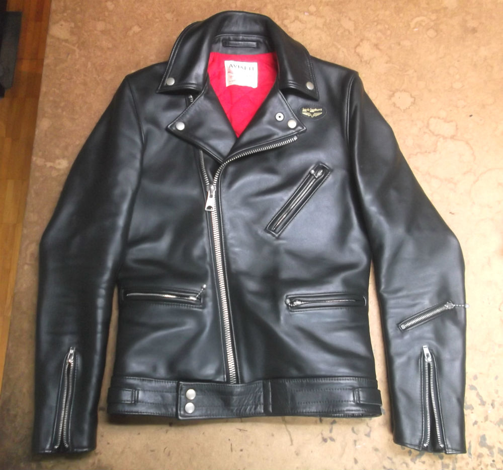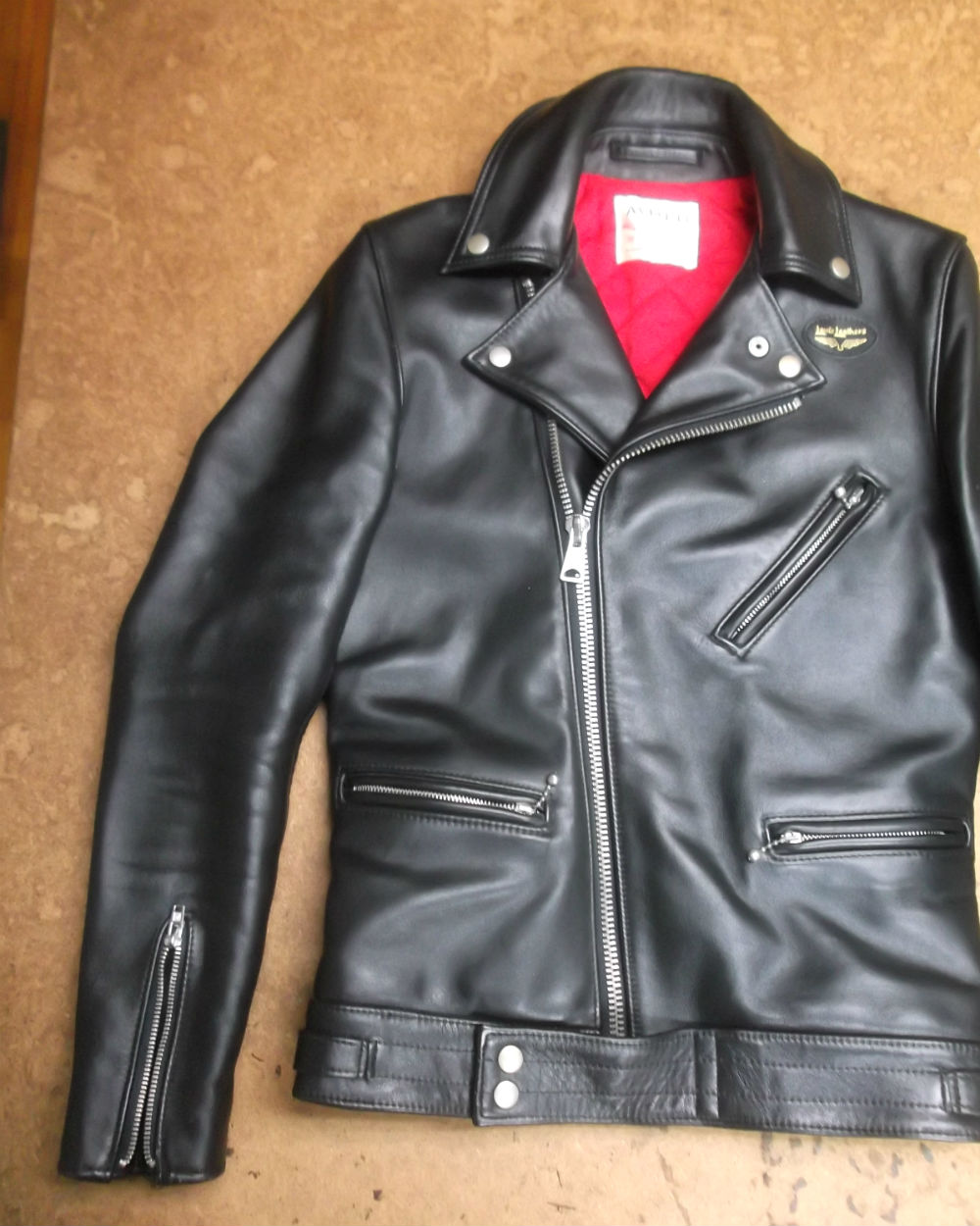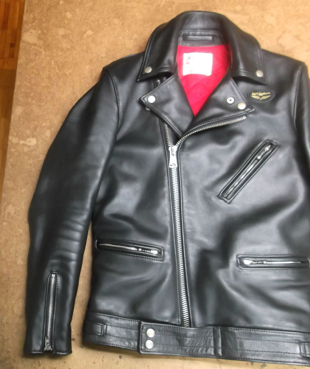 1枚目は栃木県からの郵送のお客さんの長い袖丈を短くしていく前のライダースジャケットです。