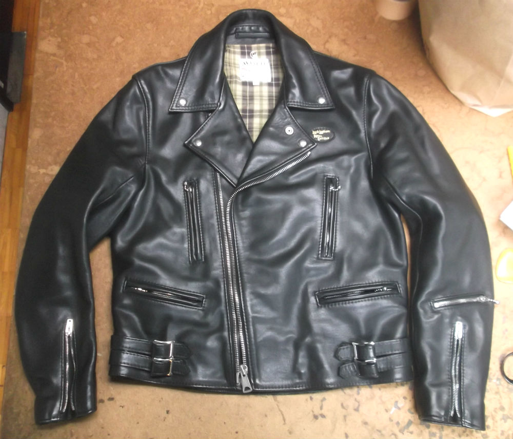 1枚目は来店されたお客さんの小さくしていく前の大きいサイズのルイスレザーのジャケットです。