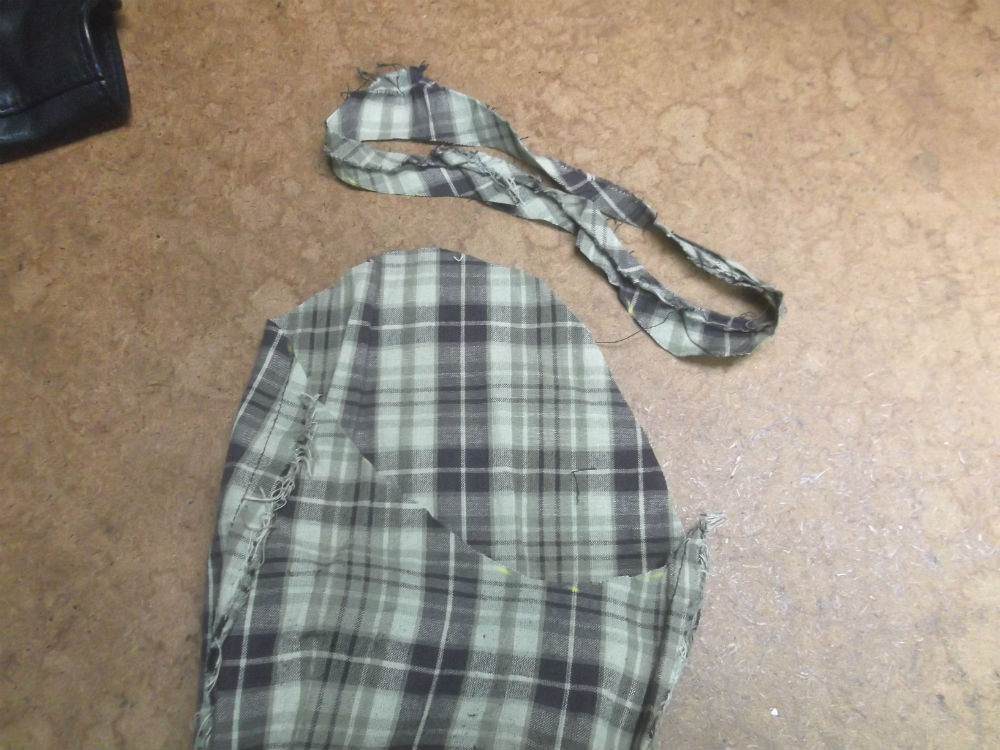 12枚目は裏地の肩幅の生地をカットした後の写真です。
