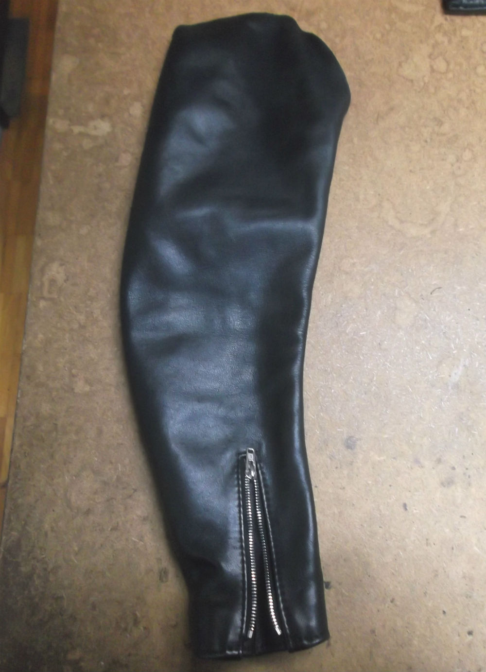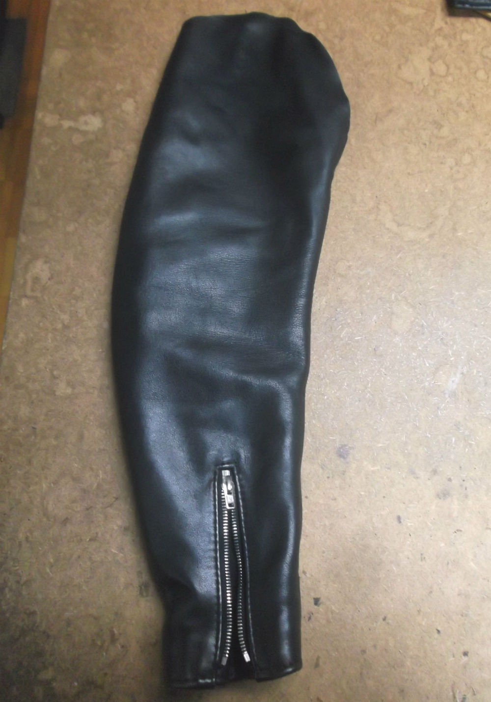 17枚目は裏地の袖山の生地も表のレザー部分と同じ幅をカットして袖丈を短くしていきます。