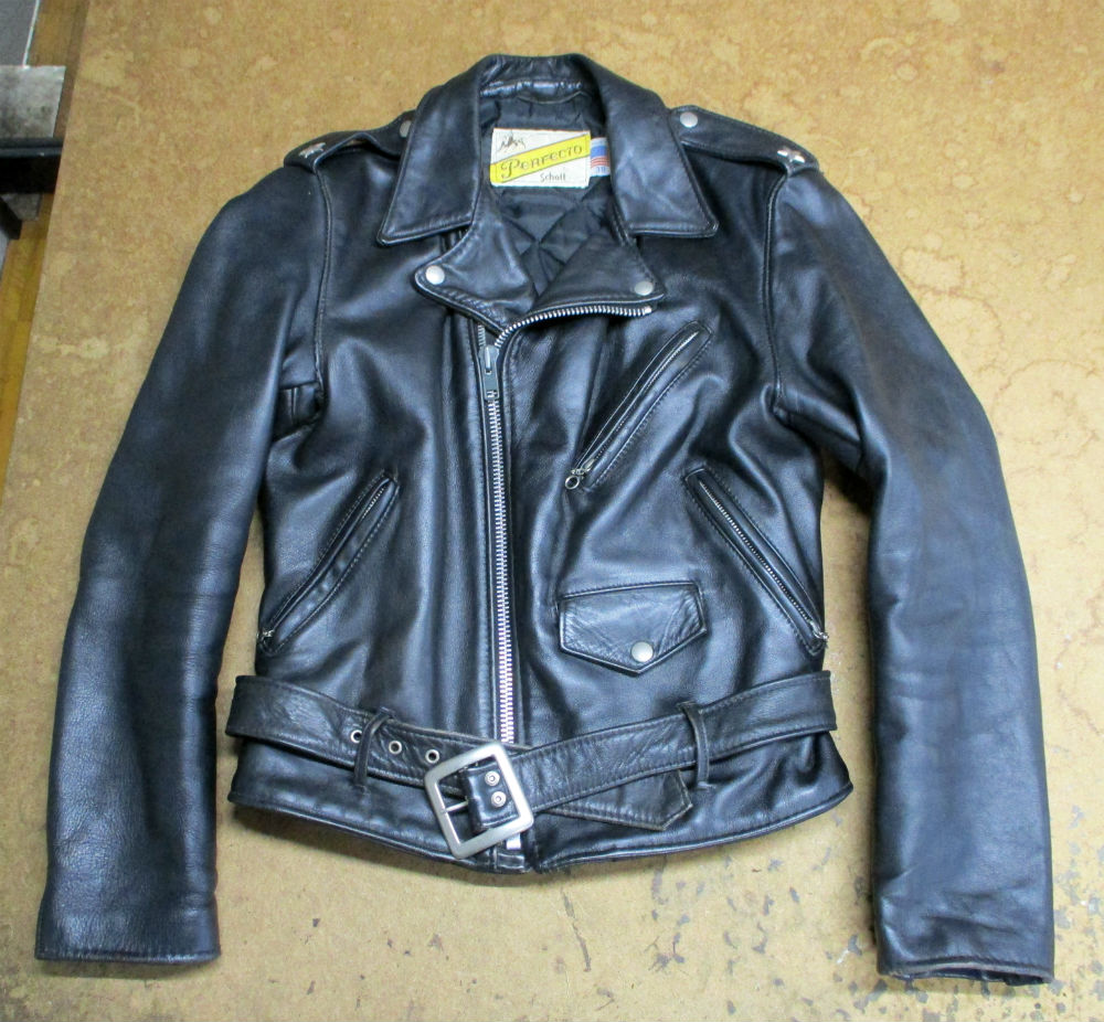 1枚目は大分県からの郵送のお客さんの長い袖丈を短くしていく前のライダースジャケットです。