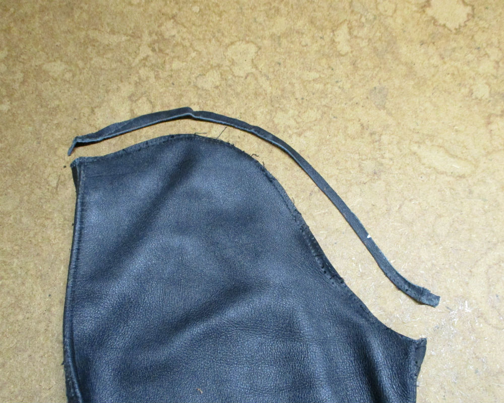 7枚目は脇のパーツの下のレザーをカットして袖丈を短くしていきます。