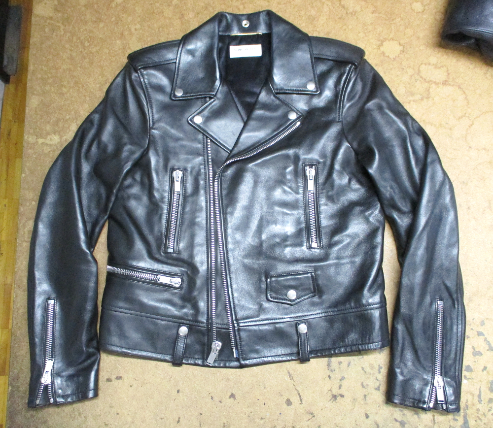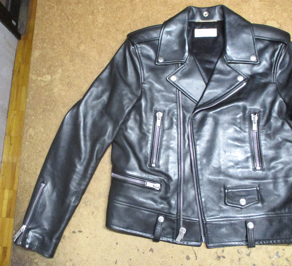 1枚目は東京都からの郵送のお客さんの長い袖丈を短くしていく前のライダースジャケットです。