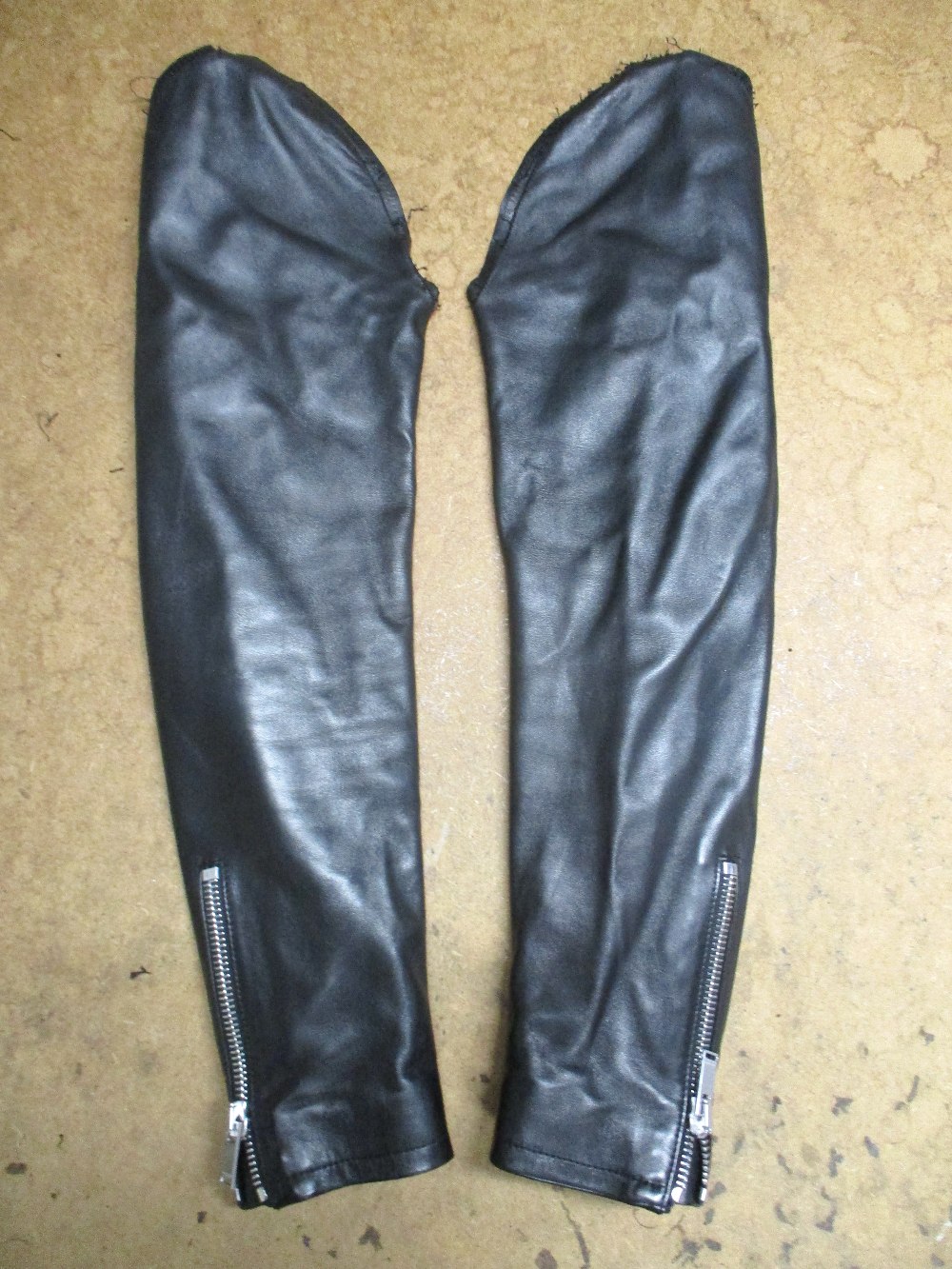 長い袖丈のレザージャケットを短くリサイズ 革ジャン袖丈詰め