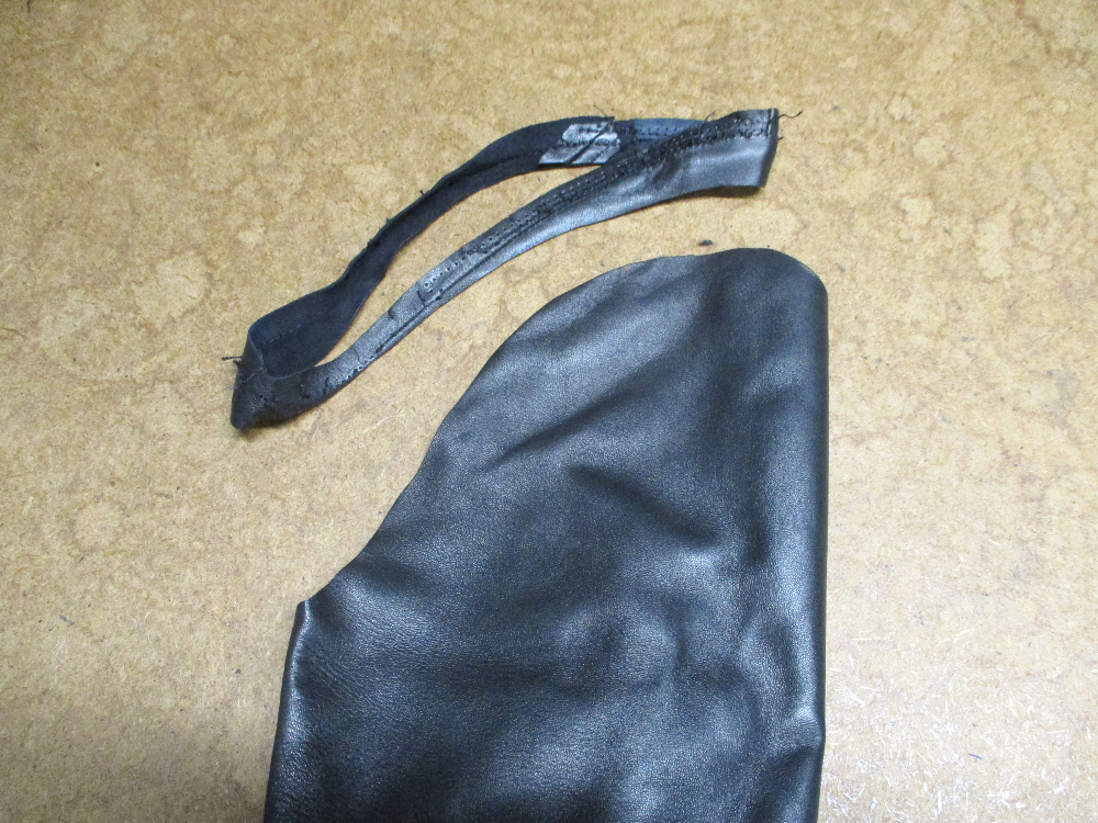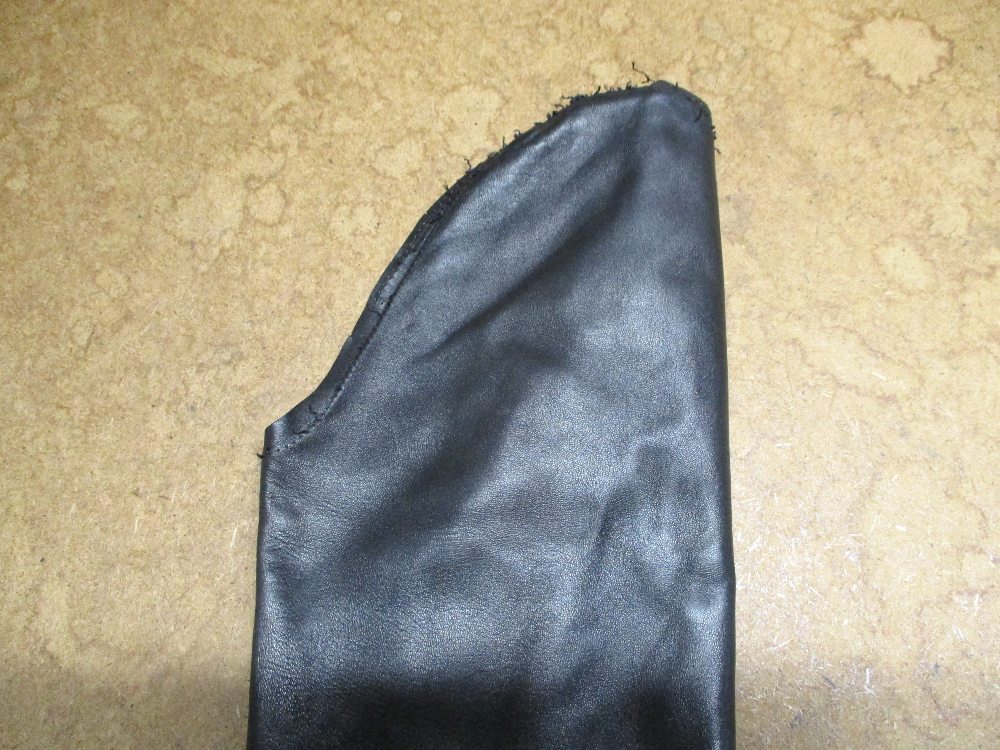 6枚目は裏地の袖山の生地も表のレザー部分と同じ長さを短くしていきます。