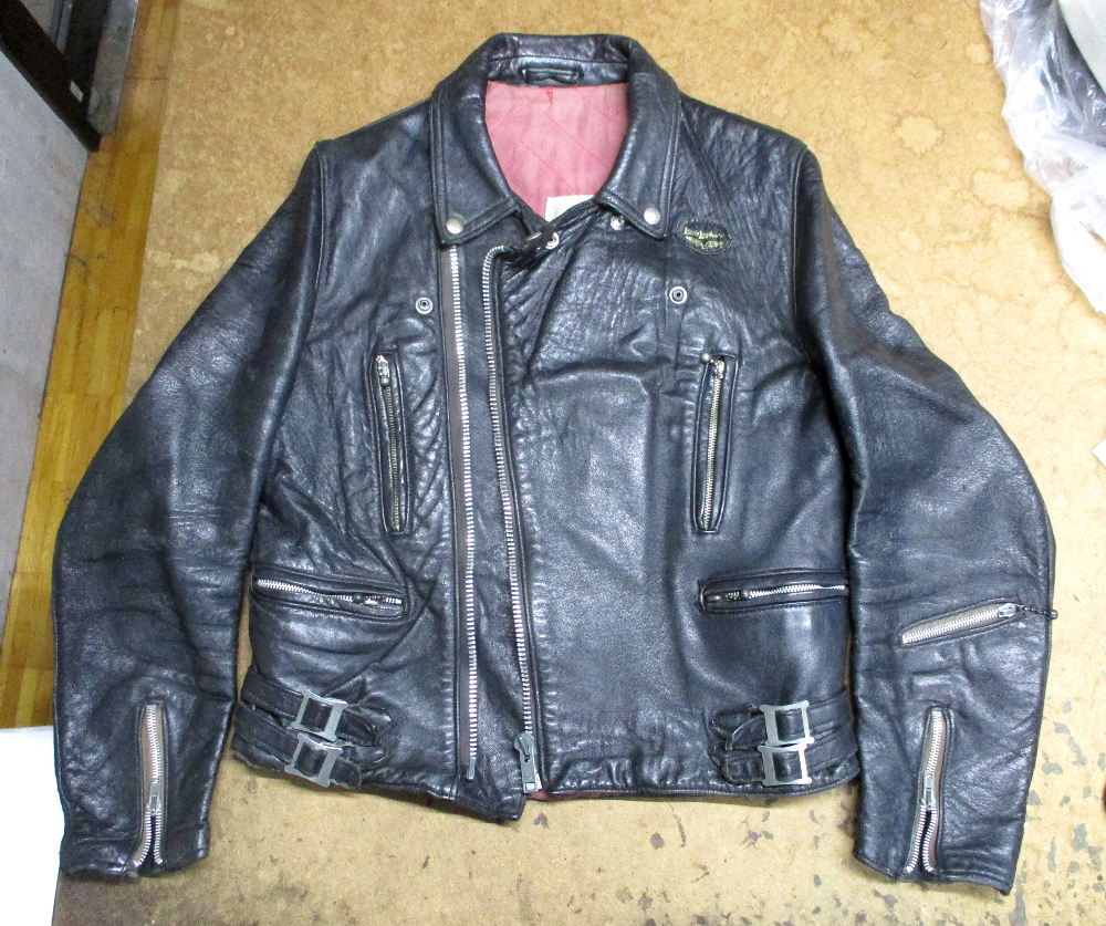 1枚目は千葉県からの郵送のお客さんの裏地をサテンの黒に生地に交換していく前のライダースジャケットです。