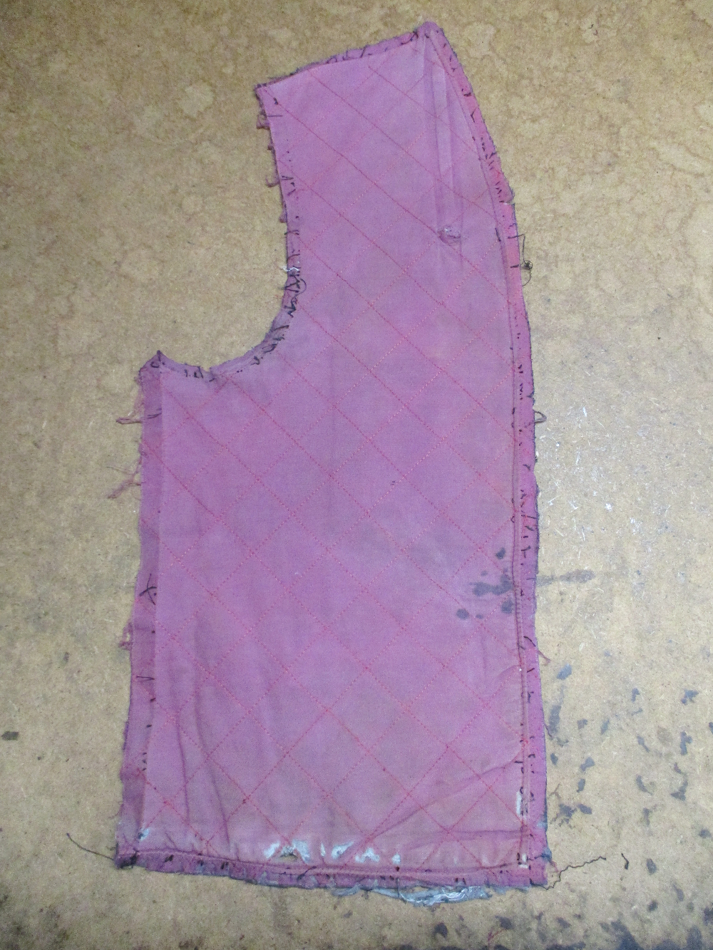 15枚目は新しい裏地の胴体の背中の生地をカットした写真です。