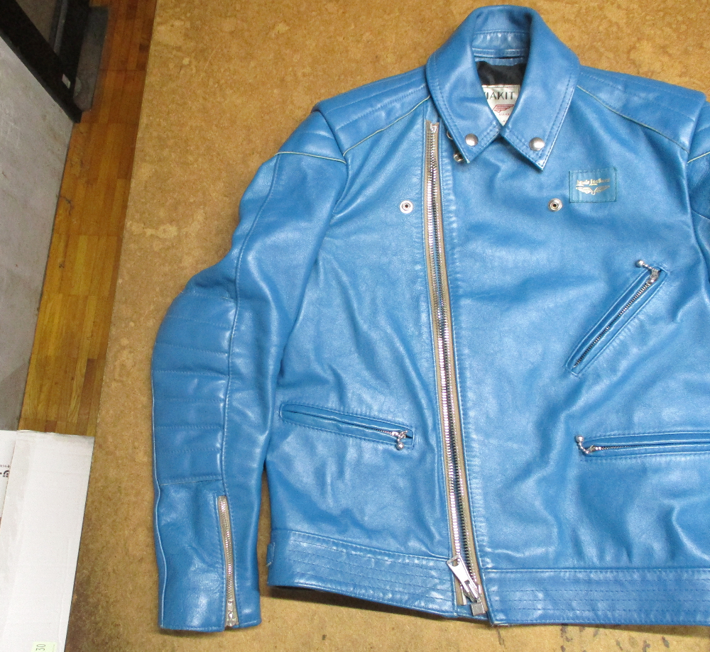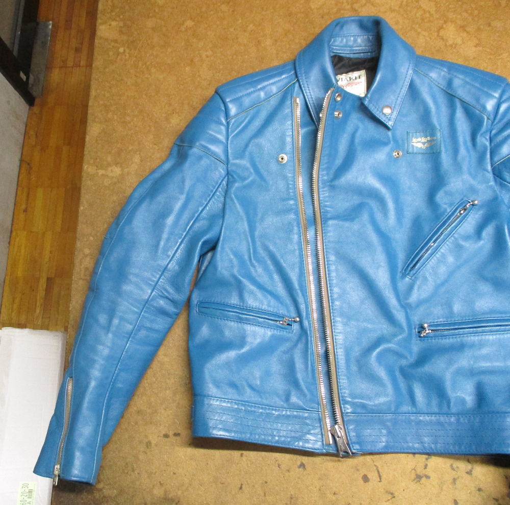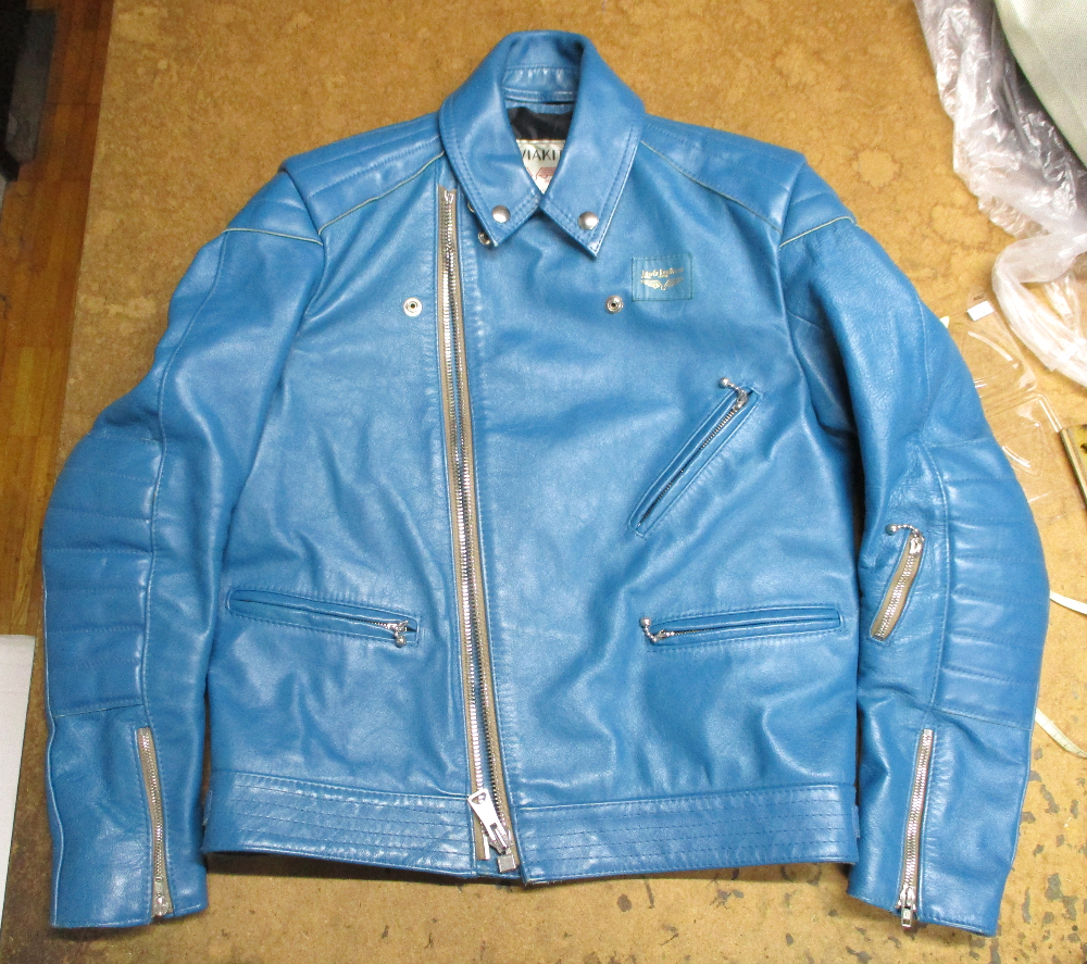1枚目は富山県からの郵送のお客さんの袖丈を短くしていく前のライダースジャケットです。