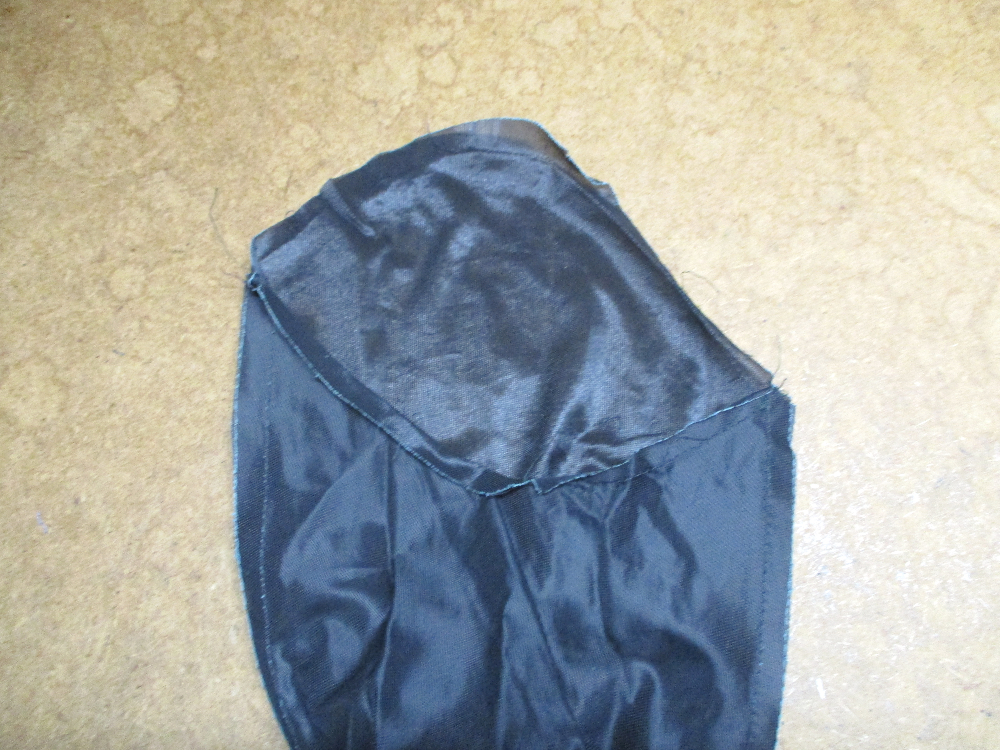 6枚目は裏地の袖山の生地を表と同じ長さをカットして袖丈を短くしていきます。