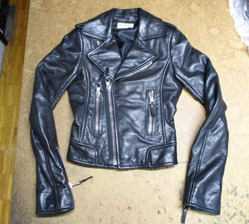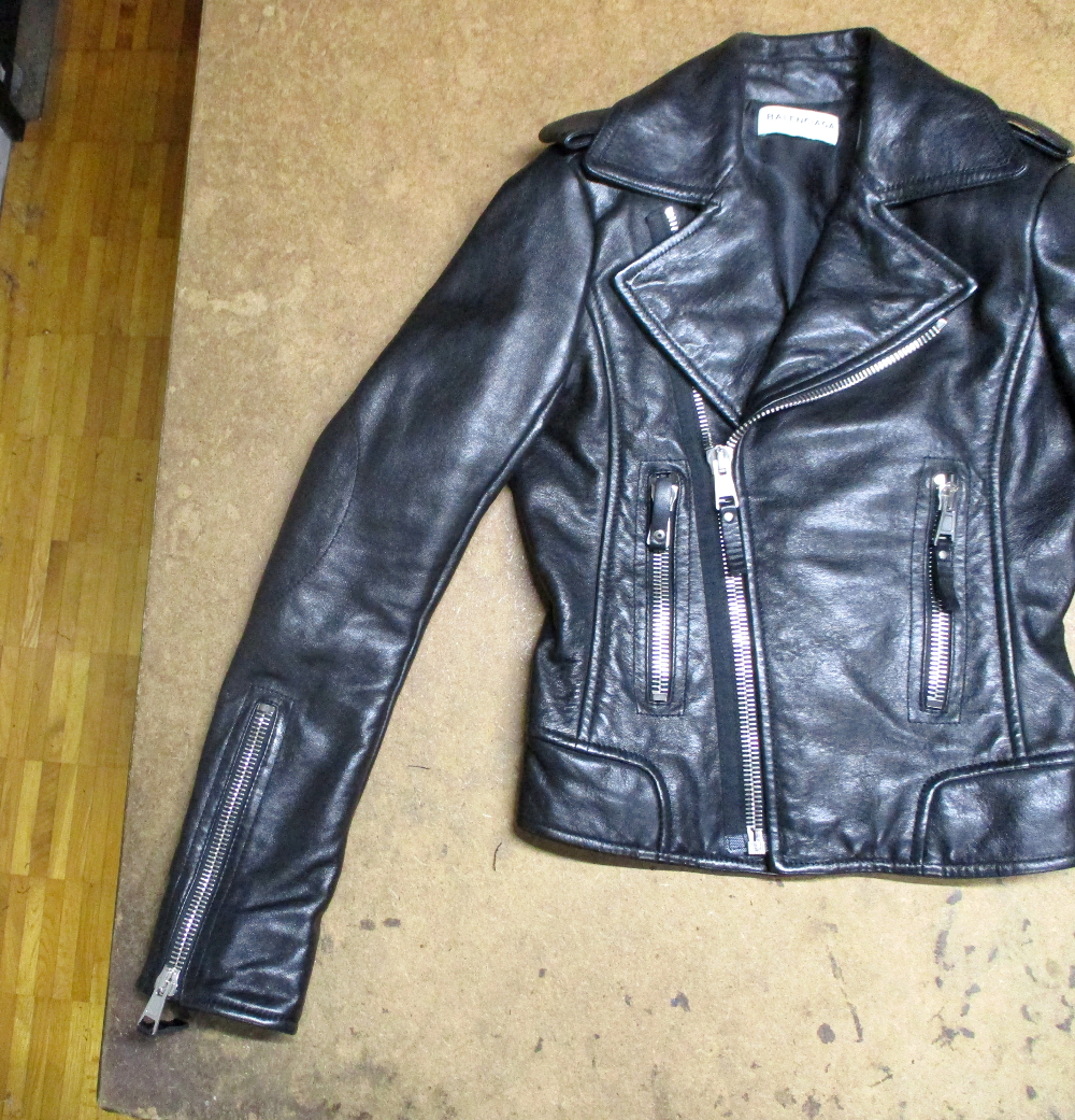1枚目は千葉県からの郵送のお客さんの長い袖丈を短くしていく前のライダースジャケットです。