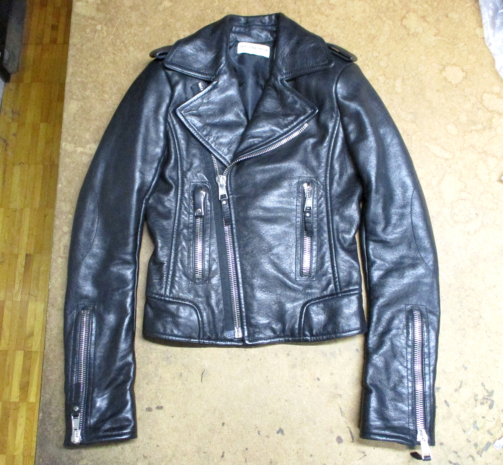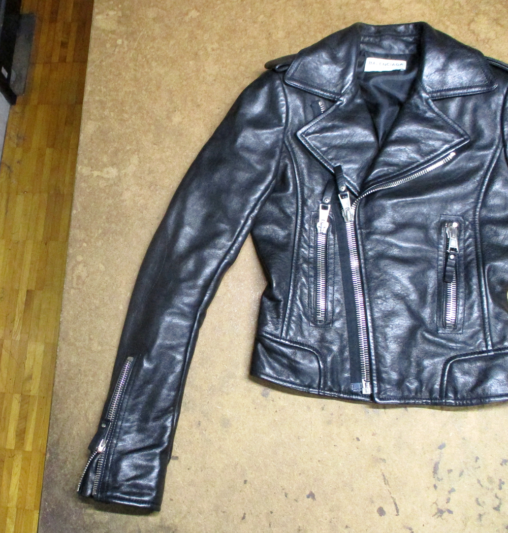8枚目は9枚目との比較で袖丈を短くしていく前のライダースジャケットです。