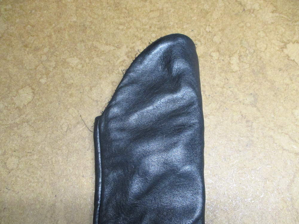 4枚目は袖山からレザーをカットして袖丈を短くしていきます。