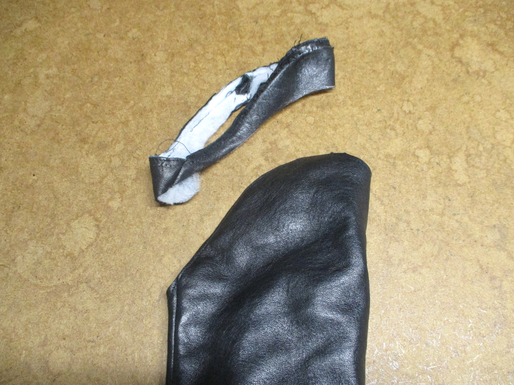 6枚目は裏地側も表のレザー部分と同じ長さの袖山の生地をカットしていきます。