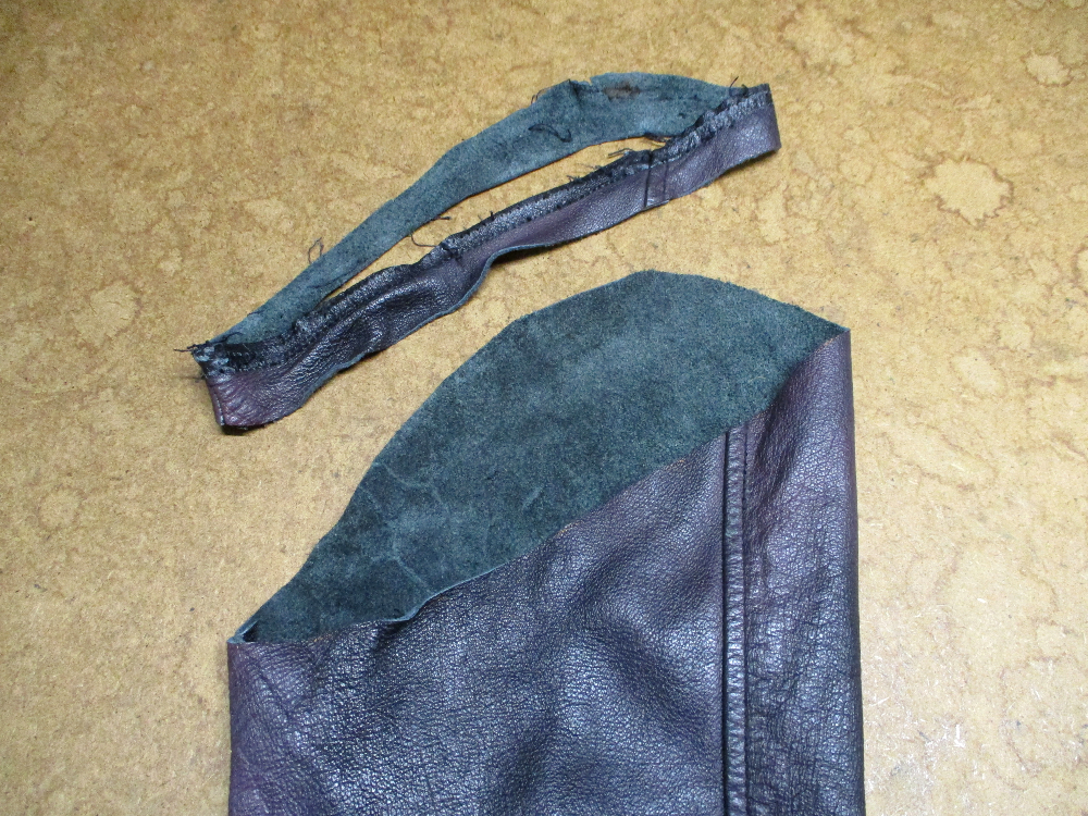 5枚目は袖山からレザーをカットした写真です。