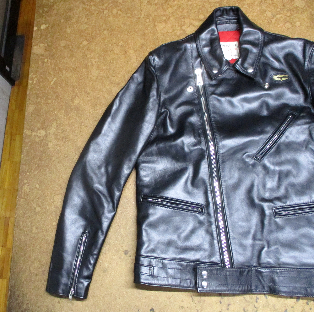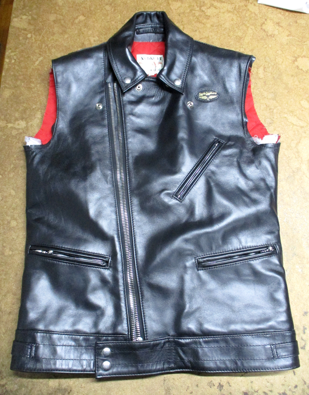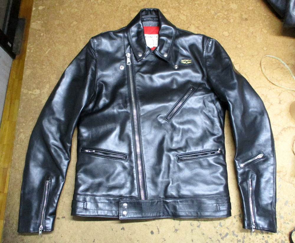 1枚目は京都府からの郵送のお客さんの袖丈を短くしていくのと二の腕から肘辺りを細くしていく前のライダースジャケットです。