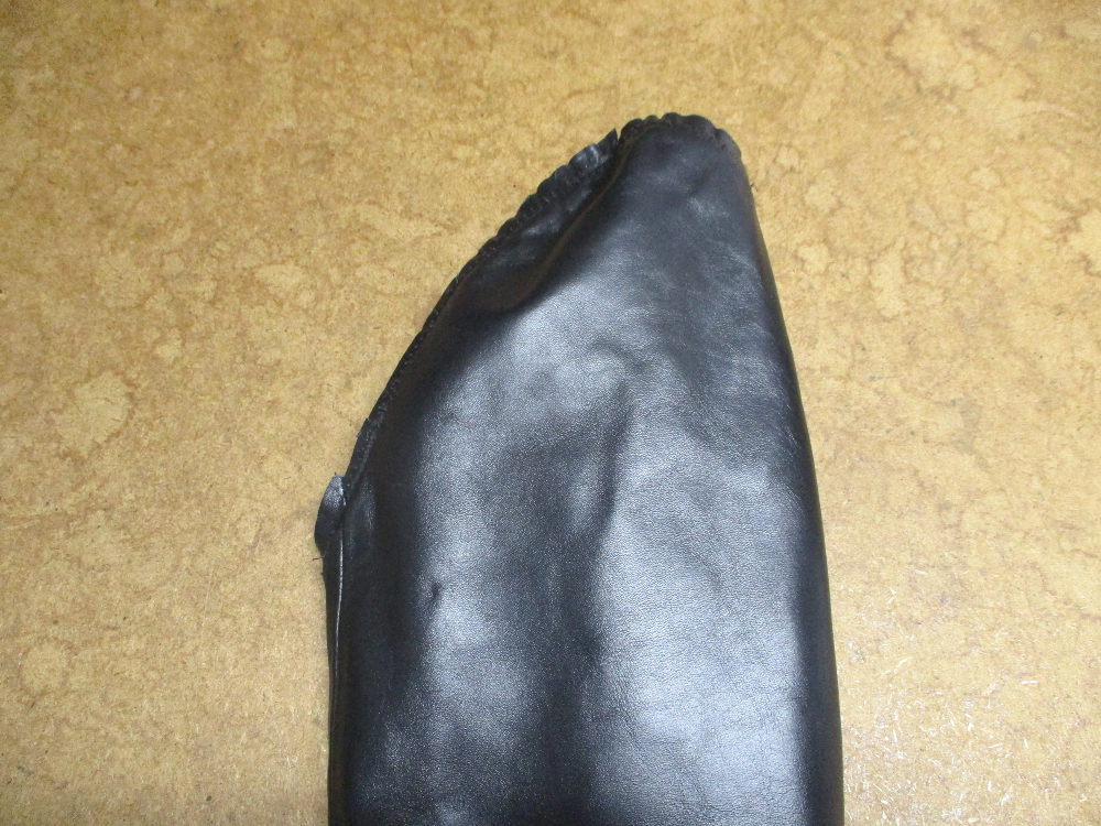 6枚目は裏地側の袖山の生地を表のレザー部分と同じ長さをカットしていきます。