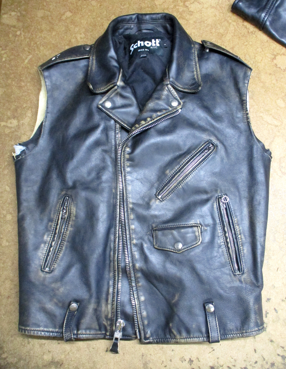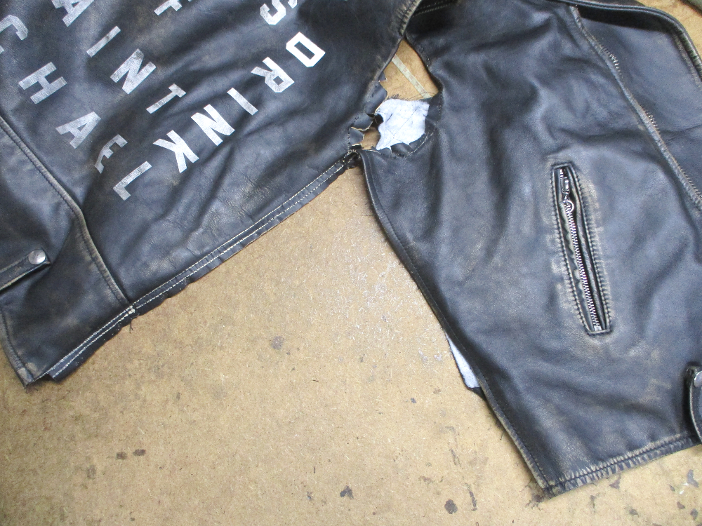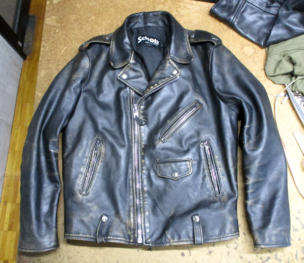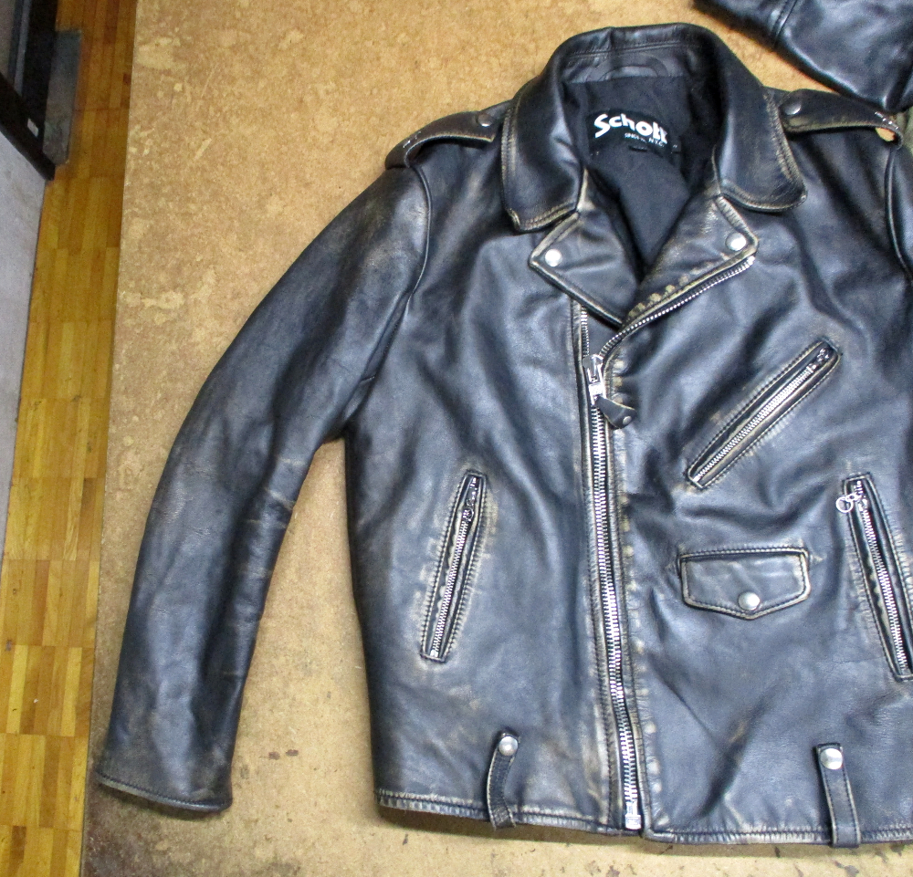 1枚目は来店されたお客さんのサイズを小さくしていく前のショットのライダースジャケットです。