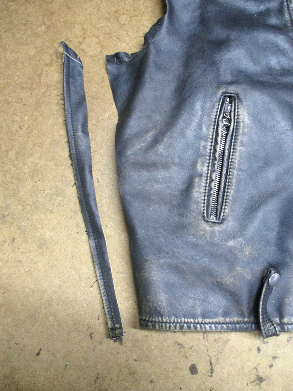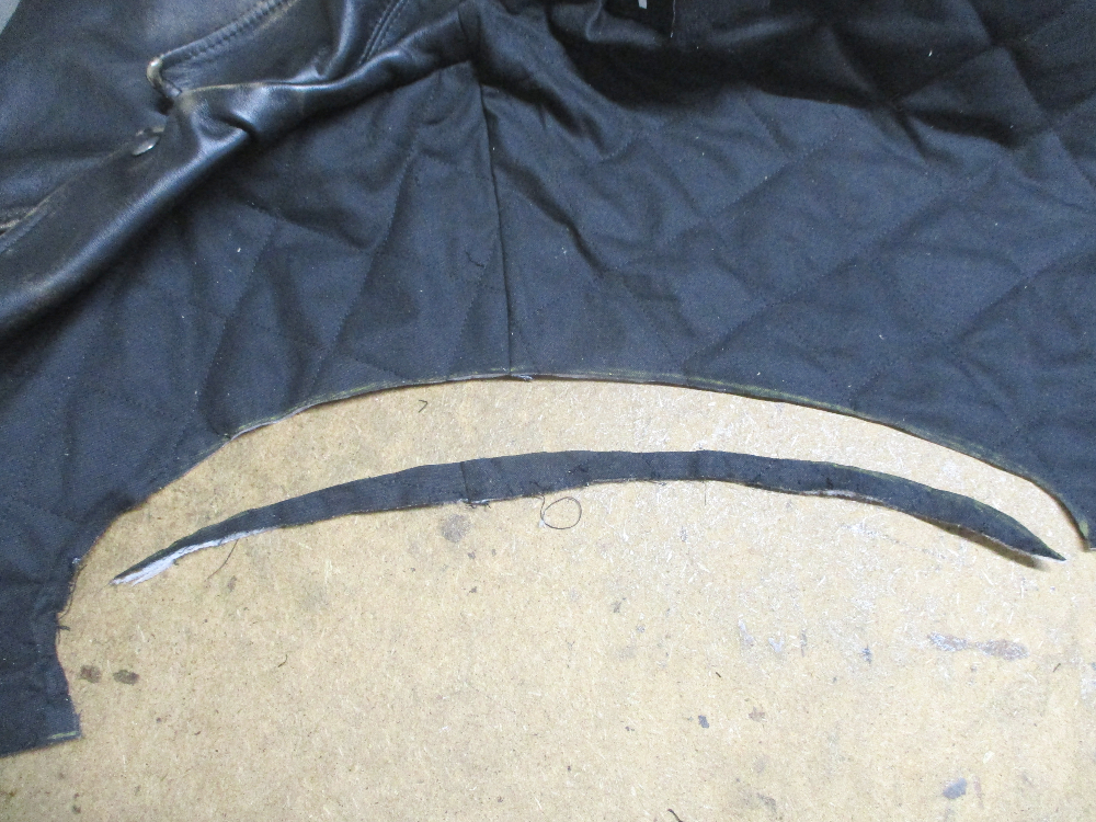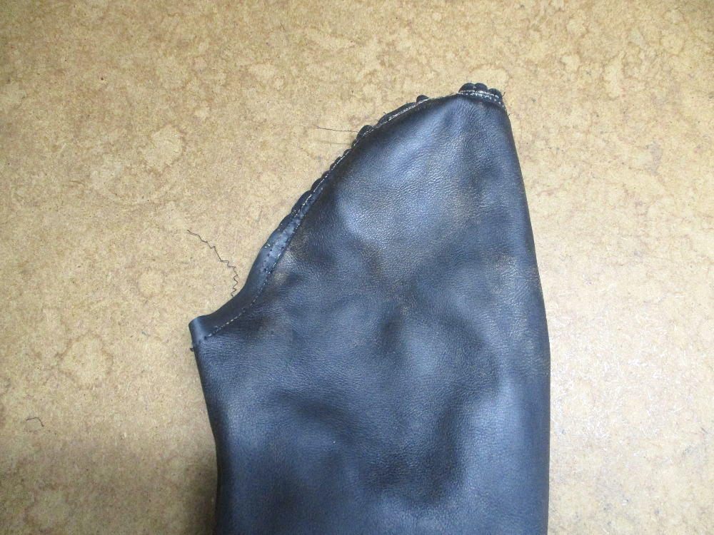 9枚目は表側の脇から裾のサイドのレザーをカットした写真です。