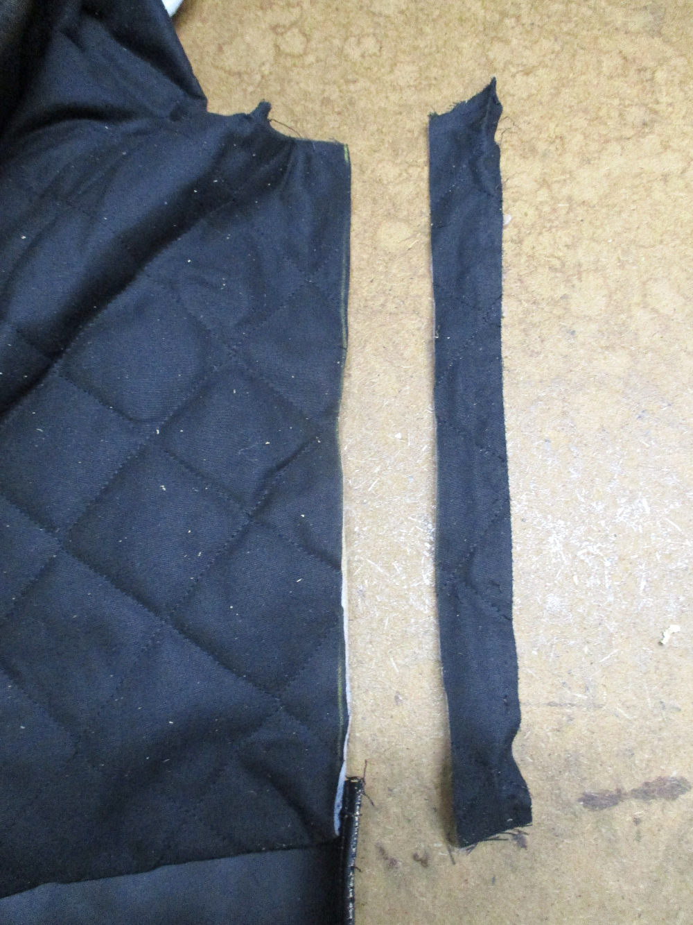 15枚目は裏地側の肩幅の生地をカットした写真です。