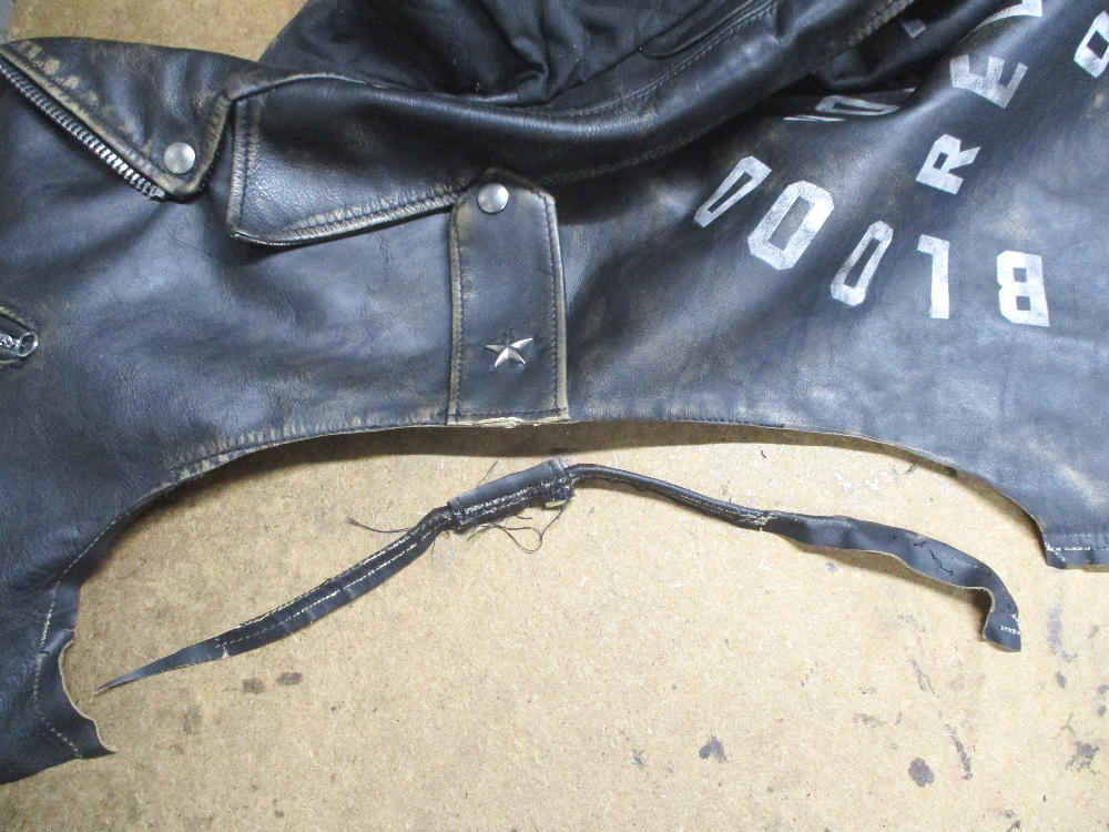 大きいサイズのライダースジャケットをお客さんの好みのサイズに小さくリサイズしていきます。