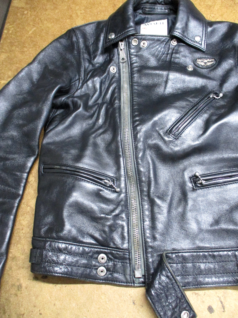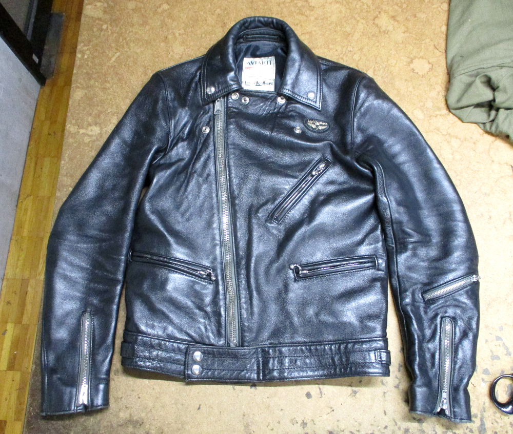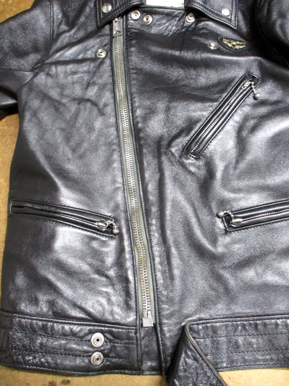 ルイスレザーのサイクロンの袖丈とファスナーの位置を変更していきます。