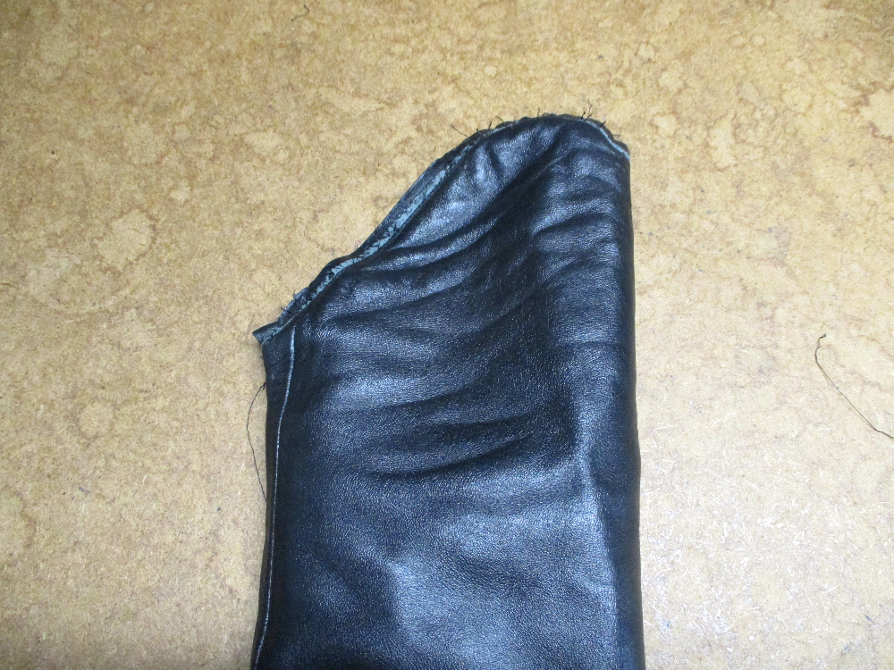3枚目は袖山からレザー部分をカットして袖丈を短くしていきます。