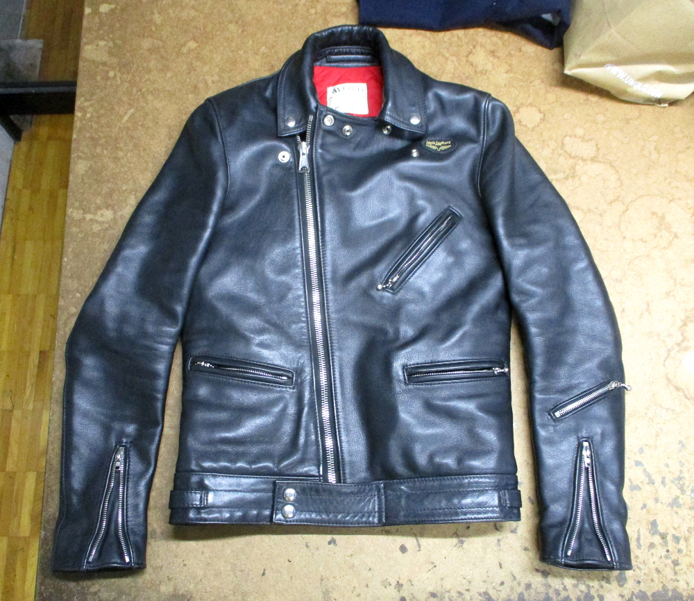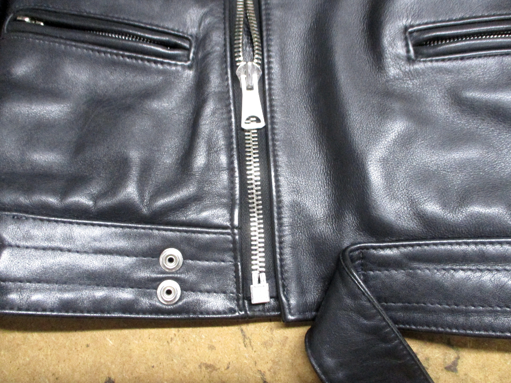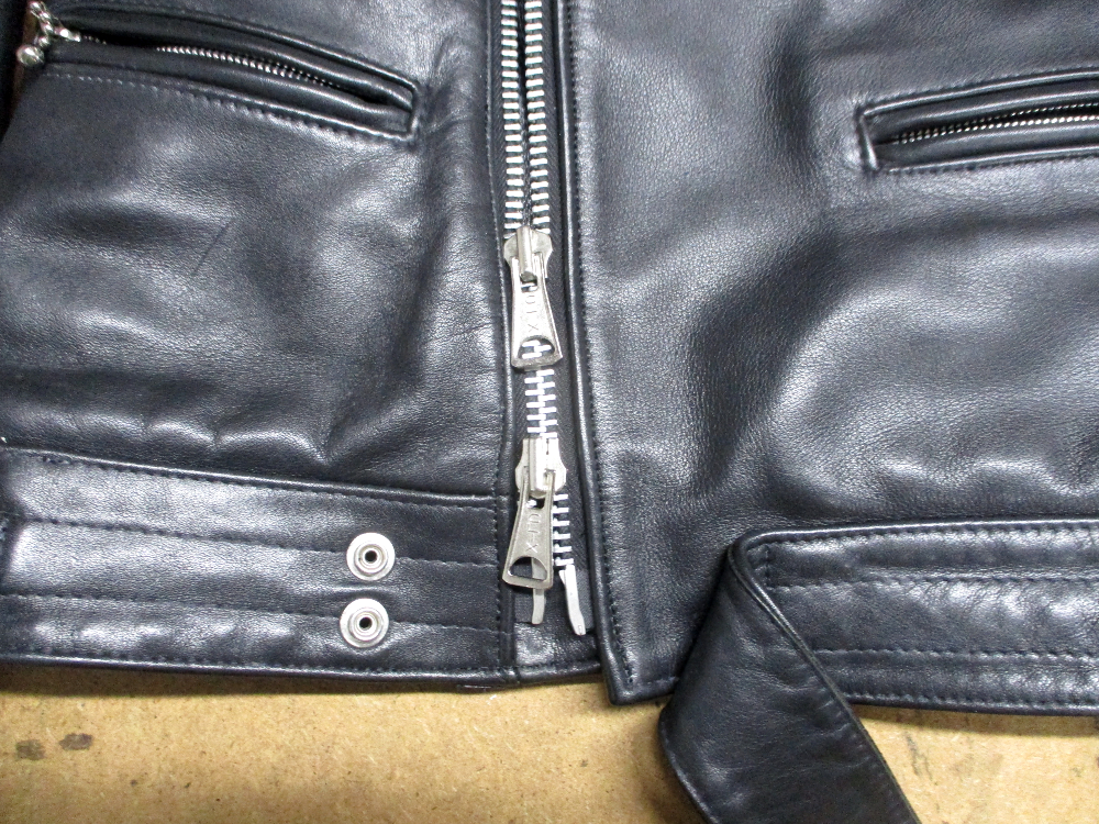 1枚目は三重県からの郵送のお客さんの袖丈を短くしてフロントのジッパーをダブルジッパーに交換していく前のライダースジャケットです。