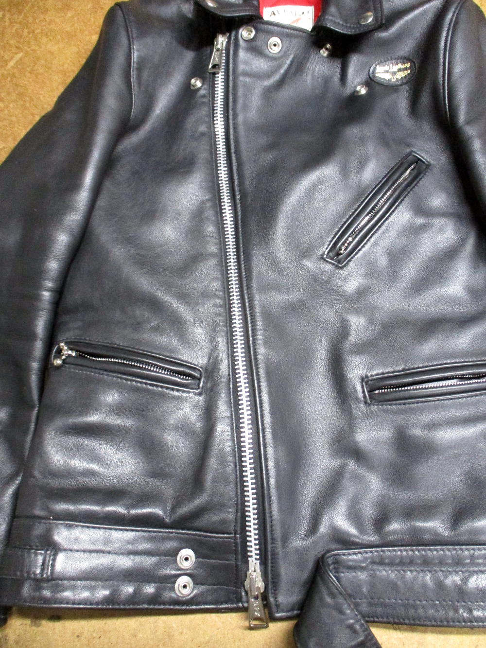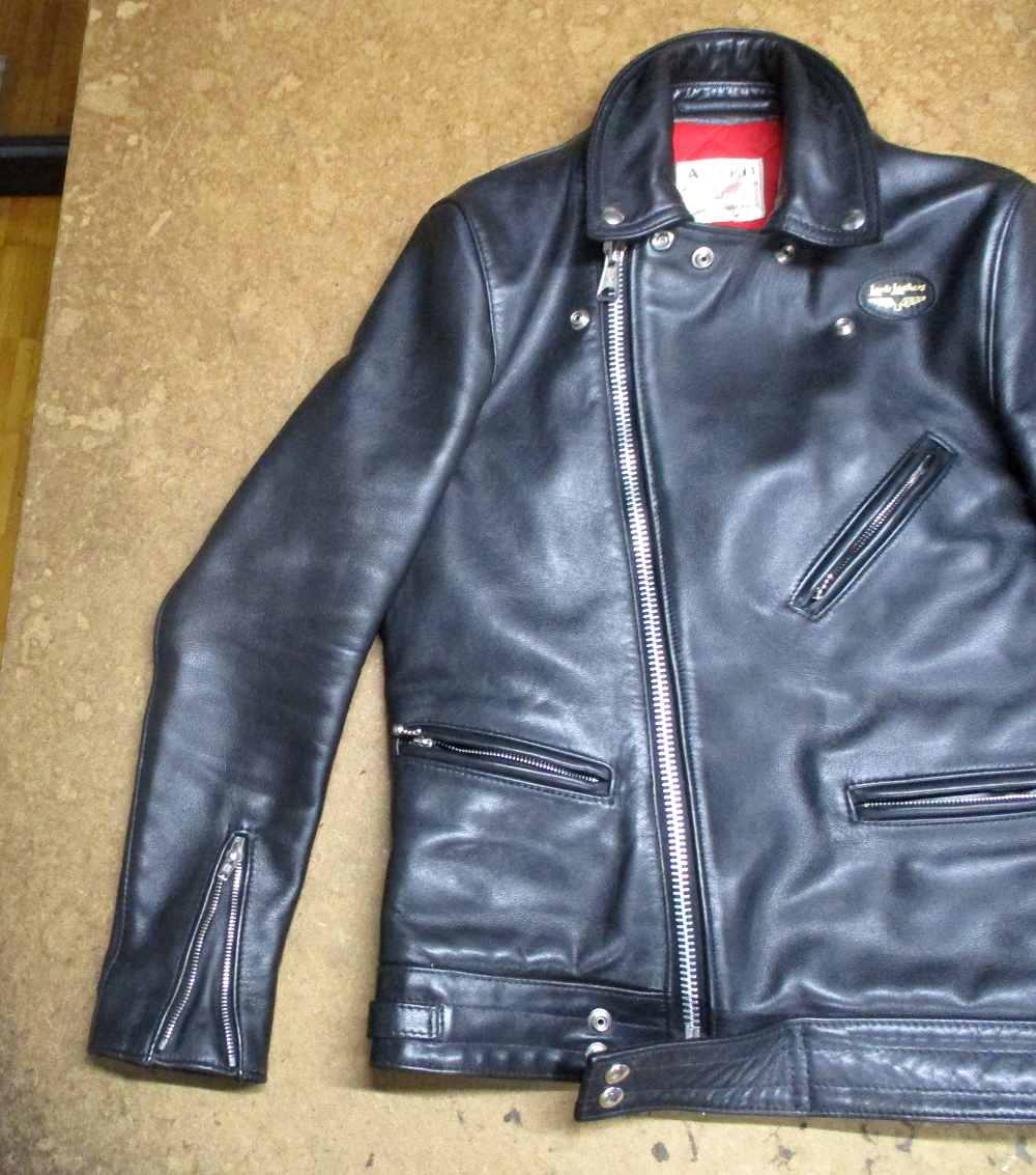 20枚目は21枚目との比較で袖丈を短くするのとダブルジッパーに交換する前のライダースジャケットです。