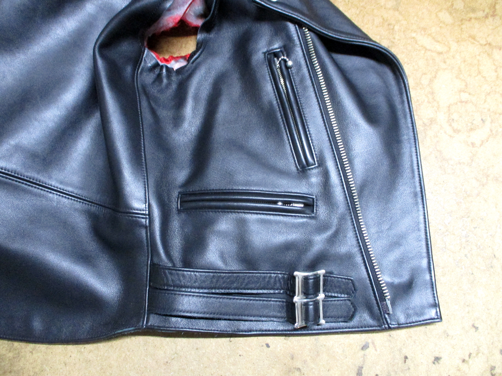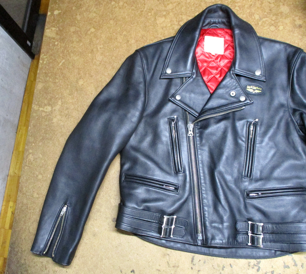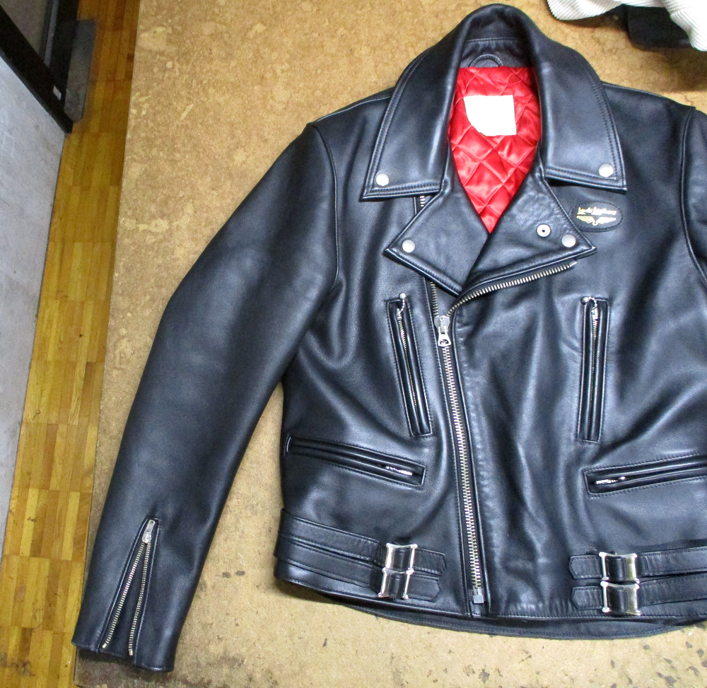 1枚目は来店されたお客さんのサイズを小さくしていく前のライダースジャケットです。