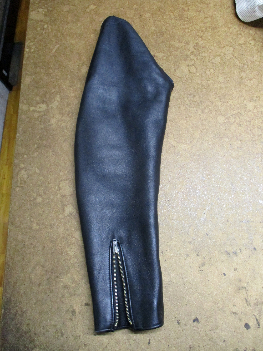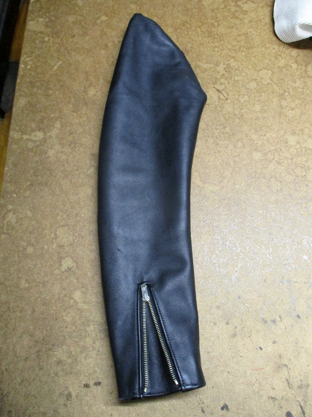 長い袖丈のレザージャケットをお客さんの好みの長さに短くリサイズ 革ジャン袖丈縮め修理
