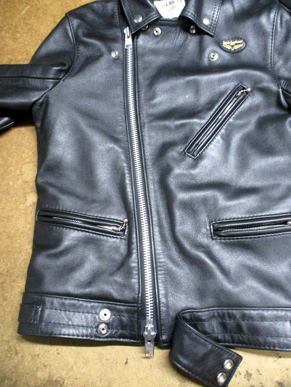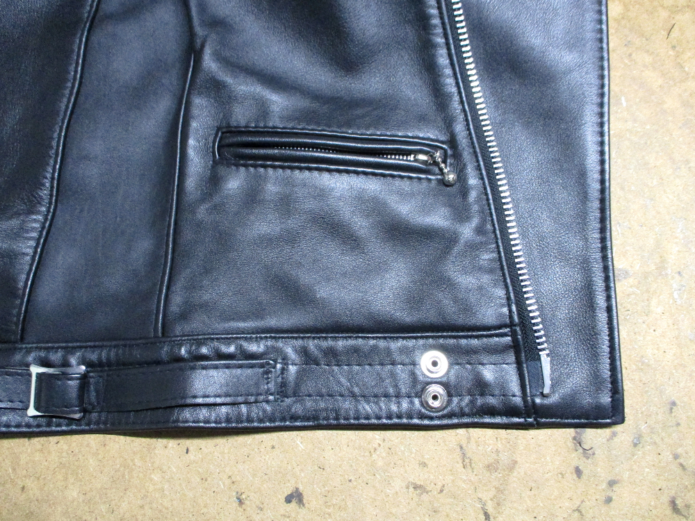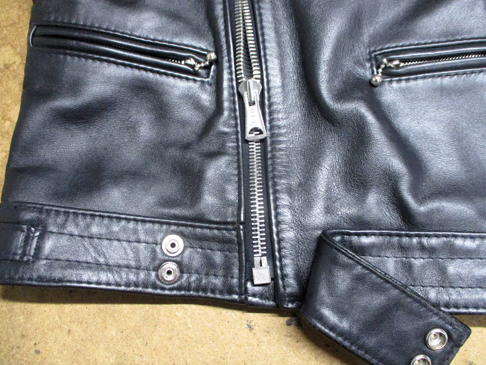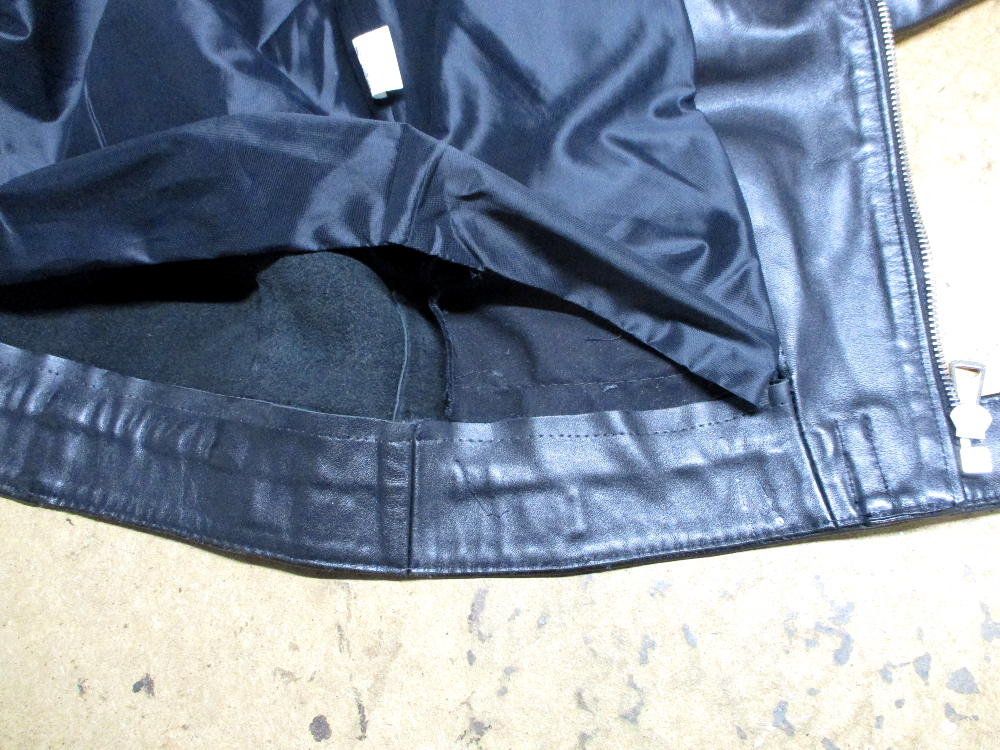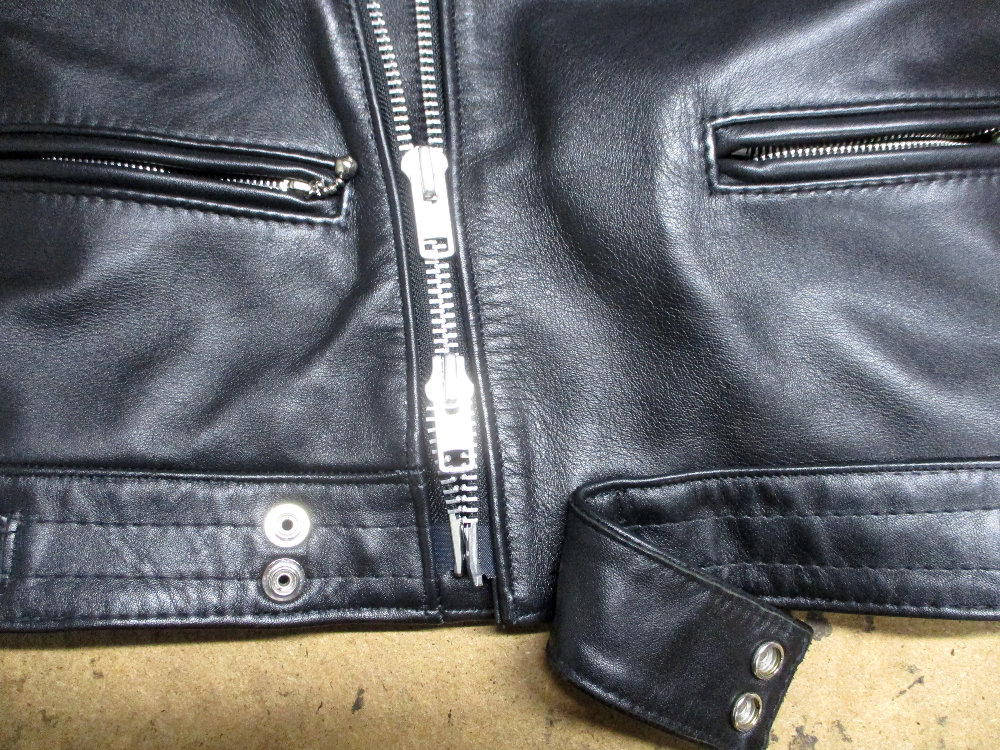 1枚目は来店されたお客さんの着丈を短くしていくのとYKKのダブルジッパーに交換していく前のライダースジャケットです。
