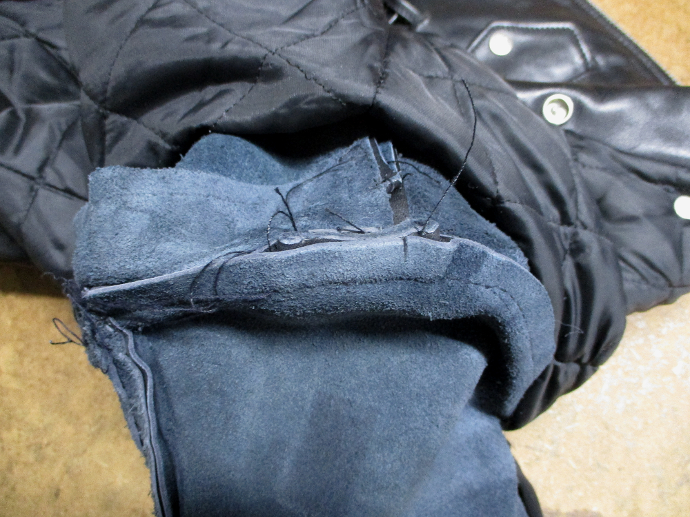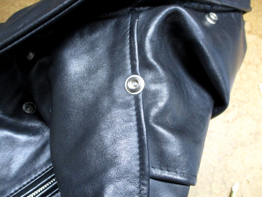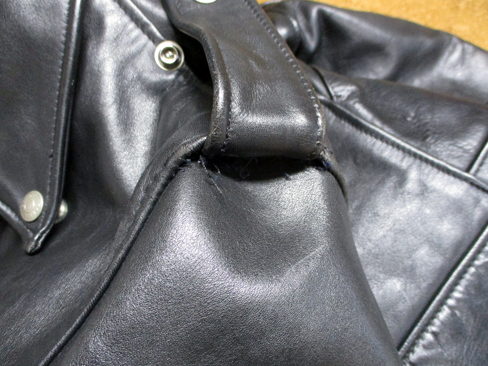1枚目は宮城県からの郵送のお客さんのエポレットを取り外していく前のライダースジャケットです。