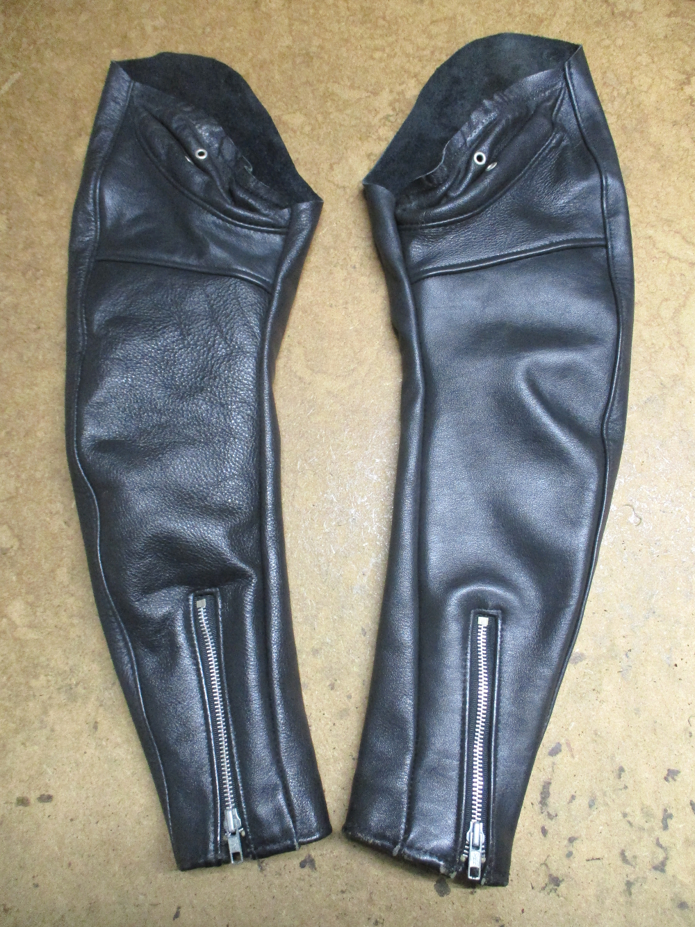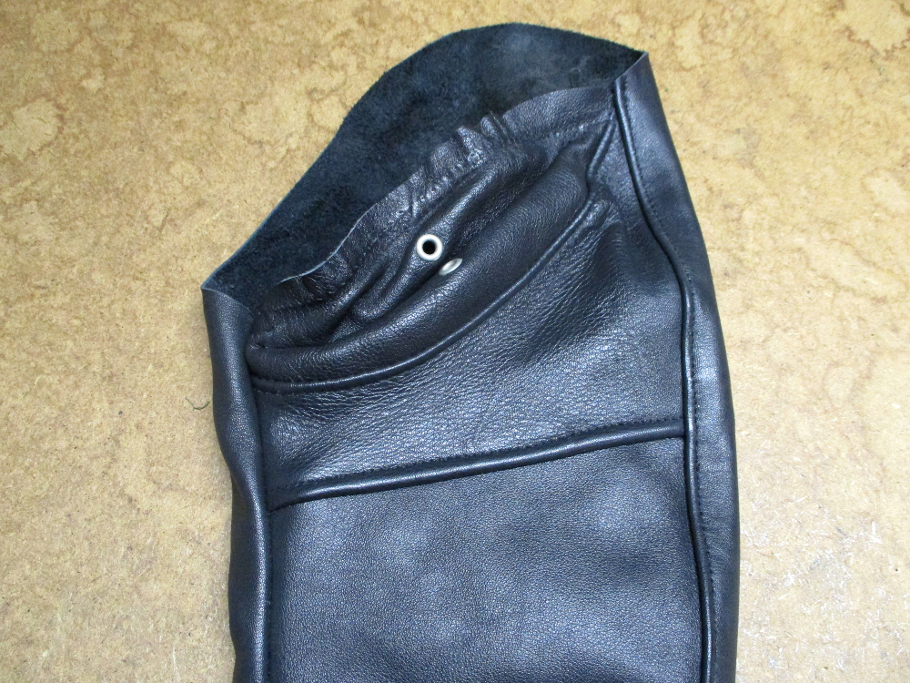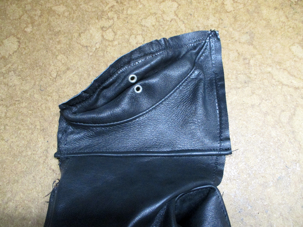 7枚目は脇のパーツの下の縫い目部分のレザーをカットして袖丈を短くした写真です。