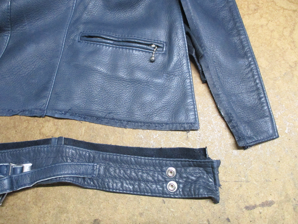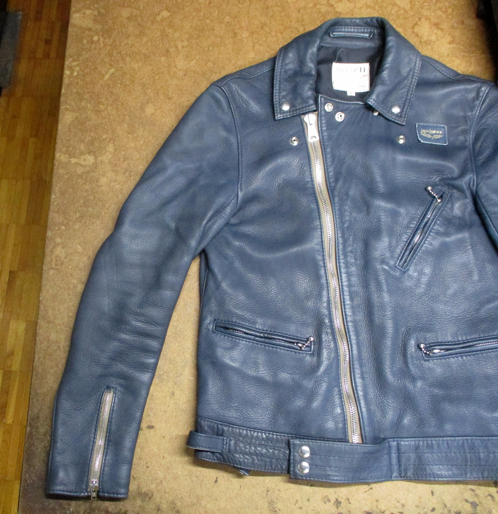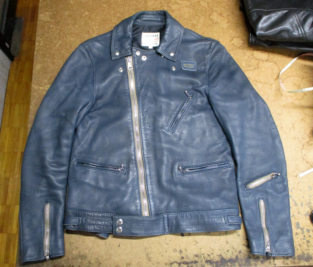 1枚目は北海道からの郵送のお客さんの着丈と袖丈を短く裾幅を細くしていく前のルイスレザーのサイクロンです。