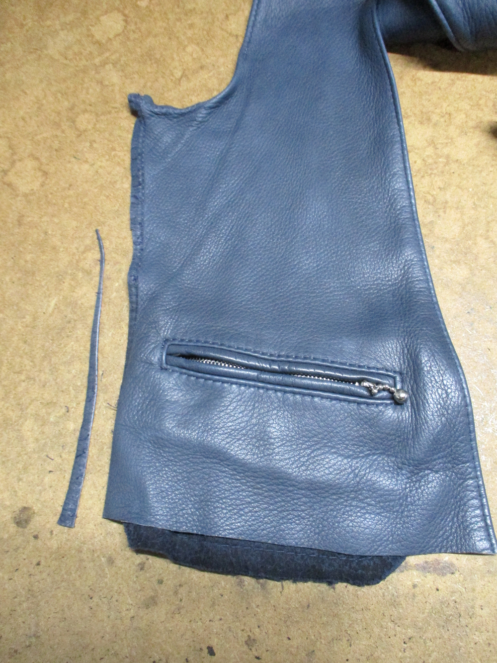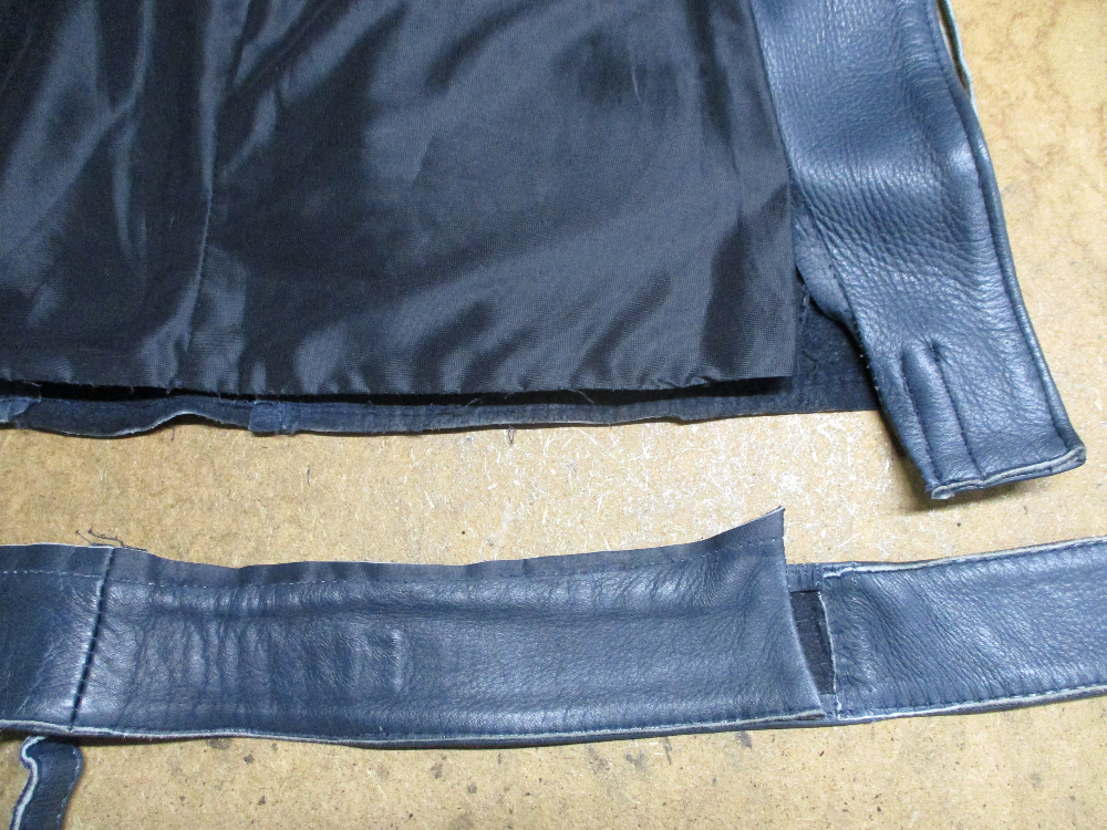 18枚目は表の帯上のレザーをカットして着丈を短くしていきます。