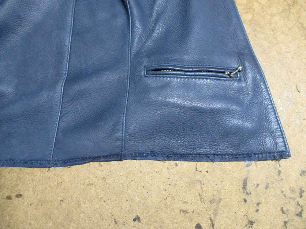 ルイスレザーの着丈と袖丈を短く裾幅をお客さんの好みの幅に細くリサイズしていきます。