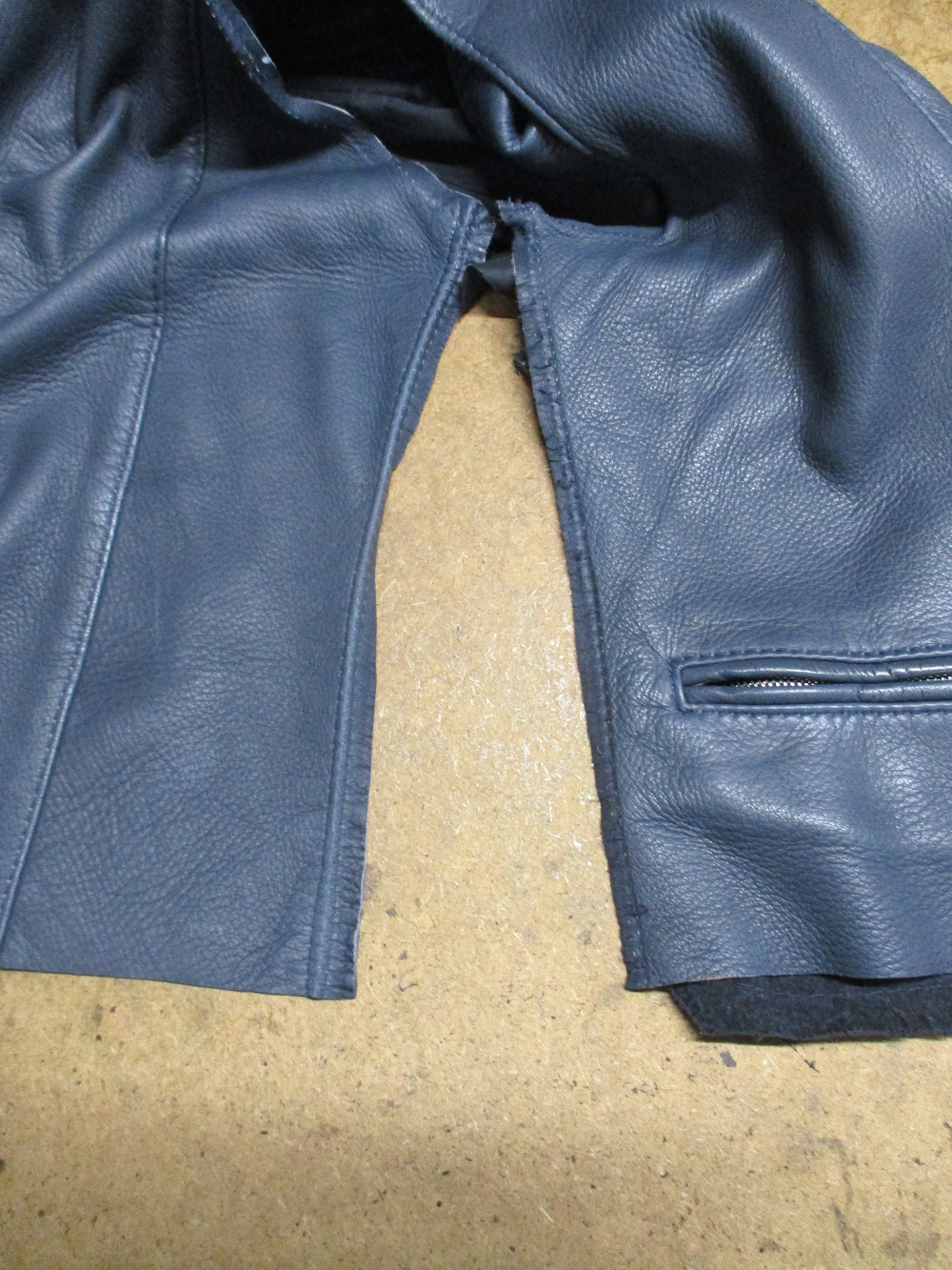 6枚目は袖山のレザー部分をカットして袖丈を短くしていきます。