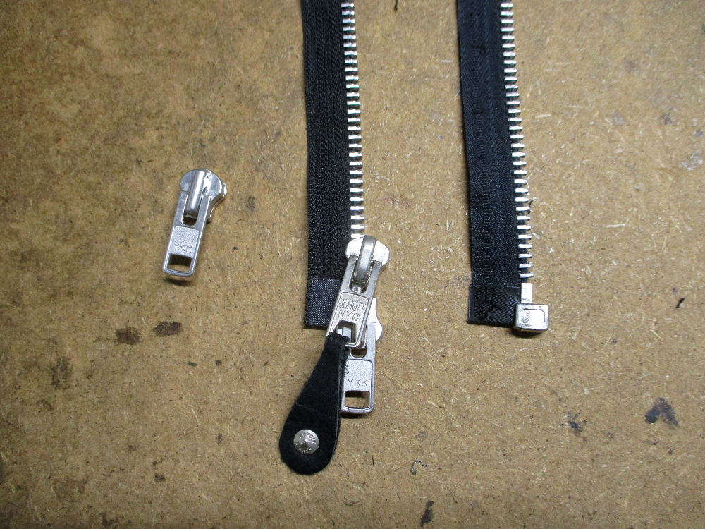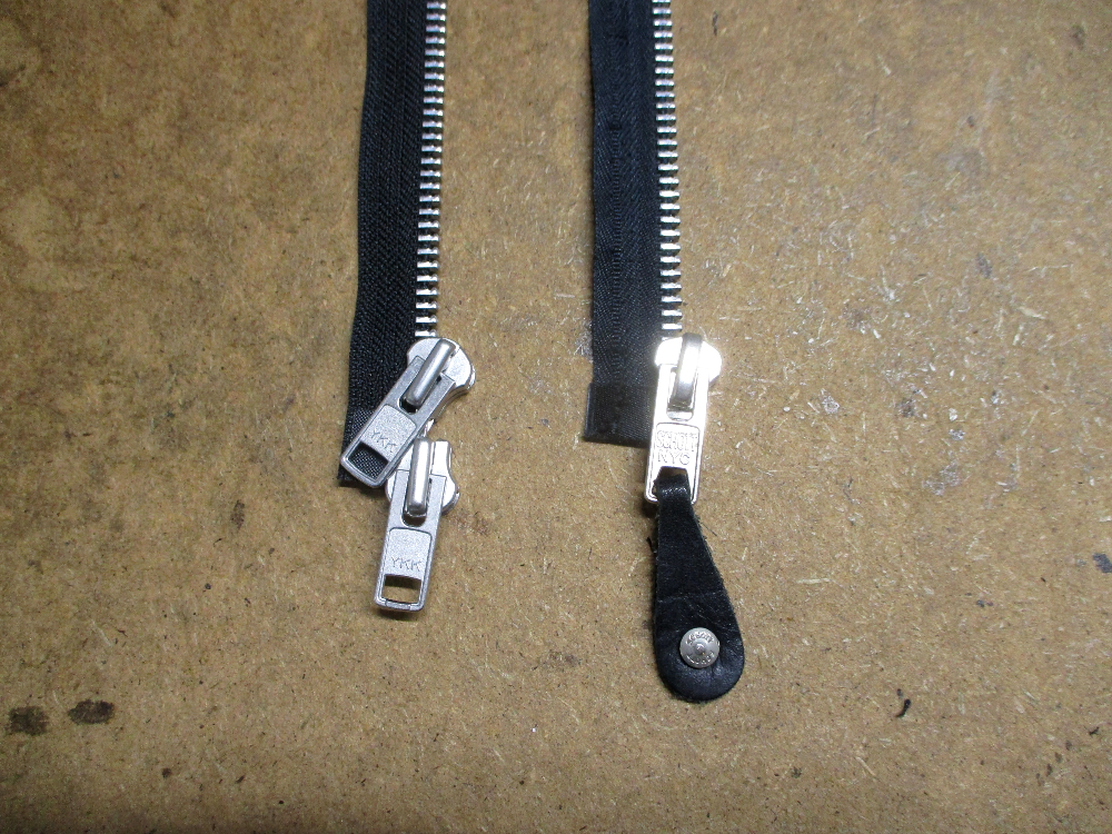 2. 壊れたライダースジャケットのジッパーを交換時にダブルジッパーに取り換え 革ジャン…