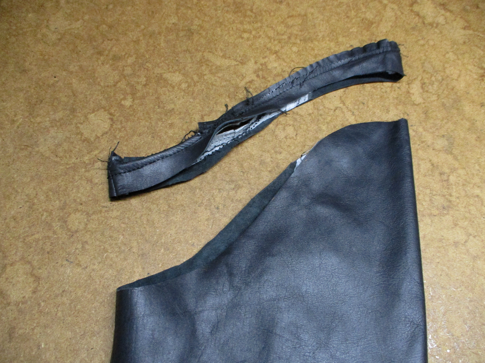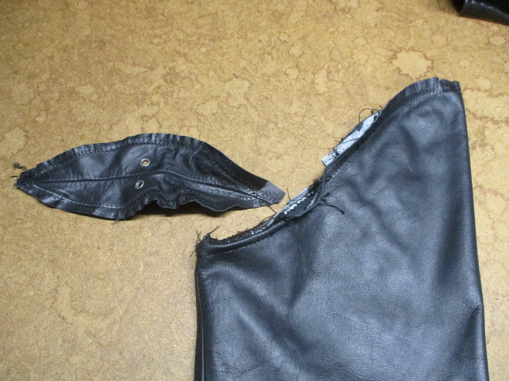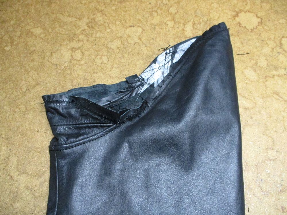 8枚目は袖山からレザーをカットした後に外した脇のパーツを取り付けた写真です。