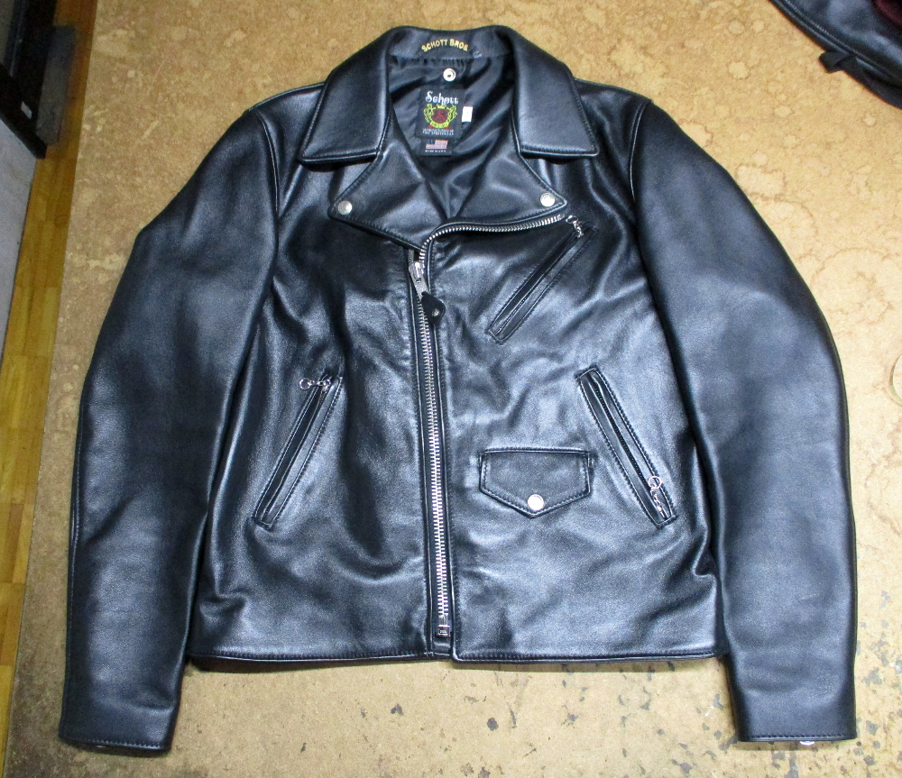 1枚目は愛知県からの郵送のお客さんの長い袖丈を短くしていく前のライダースジャケットです。
