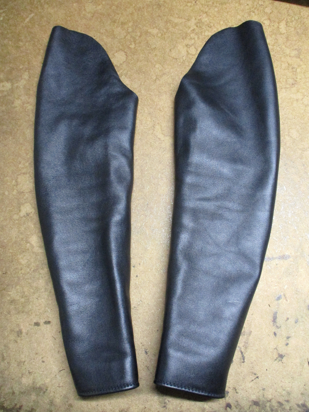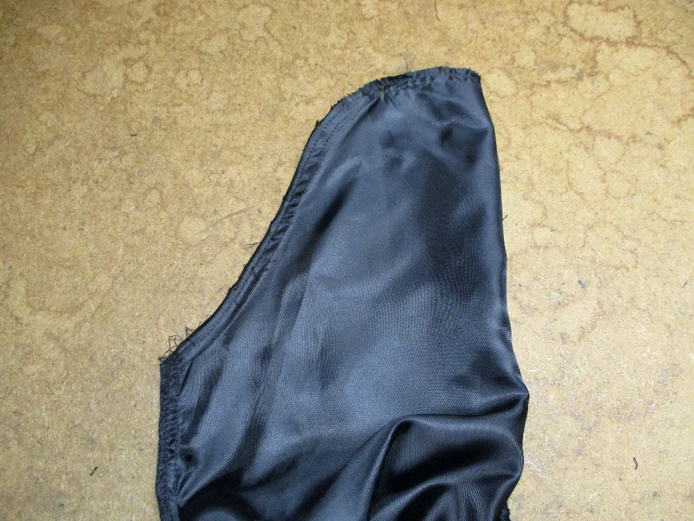 6枚目は裏地の袖山の生地も表のレザー部分と同じ長さをカットしていきます。