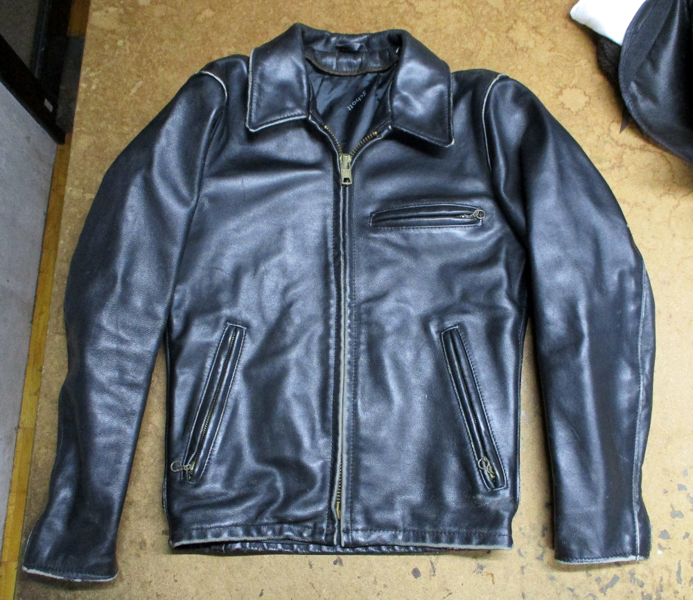 1枚目は山口県からの郵送のお客さんのオープンジッパーをダブルジッパーに新しく交換していく前のショットのライダースジャケットです。