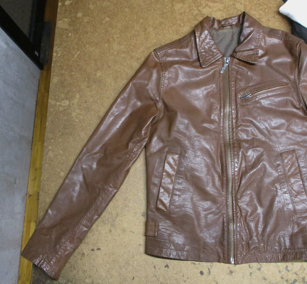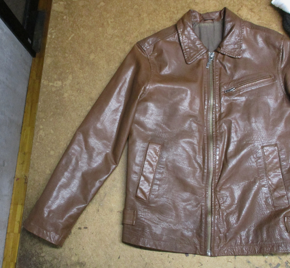 1枚目は来店されたお客さんの長い袖丈を短くしていく前のレザージャケットです。
