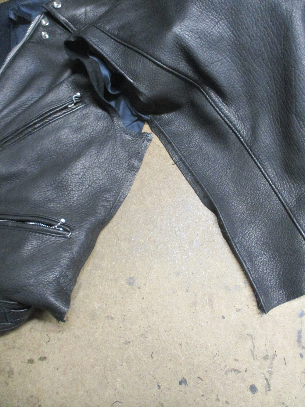 エアロレザーの大きいサイズのジャケットをお客さんの好みのサイズに小さくリサイズ