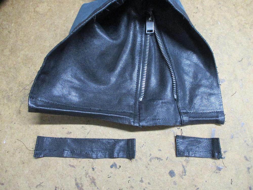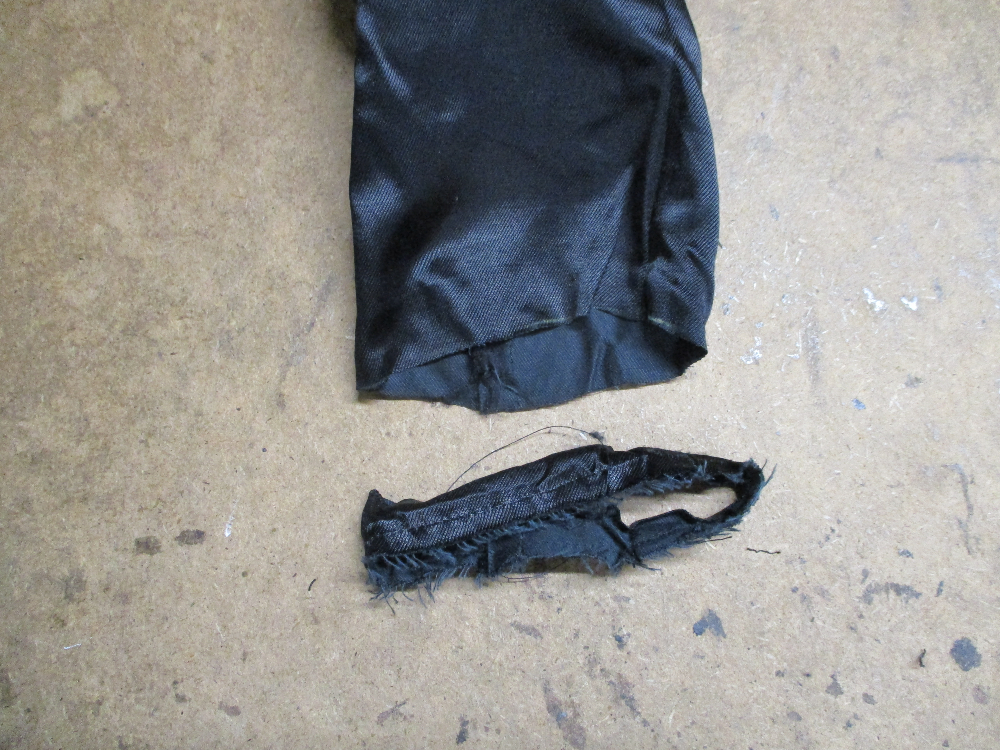 6枚目は袖先のファスナーのパーツを取り外すのに裏地の縫い目をばらした写真です。