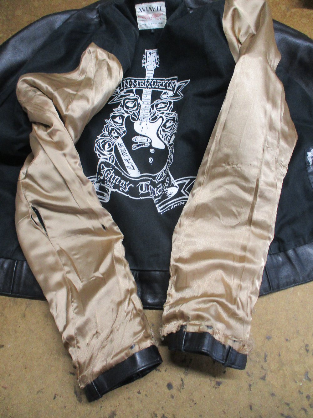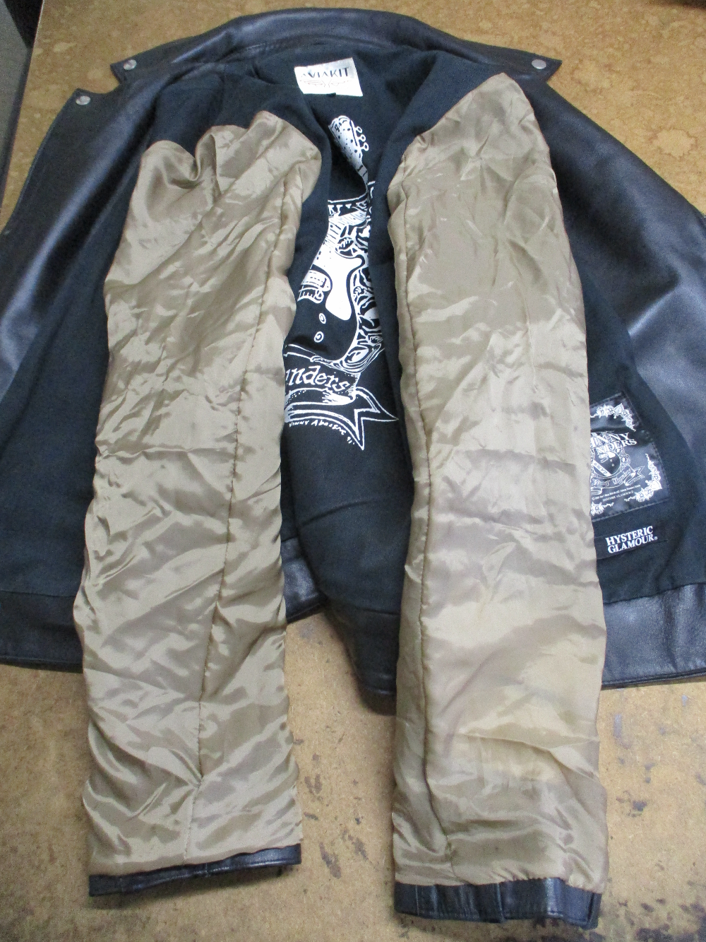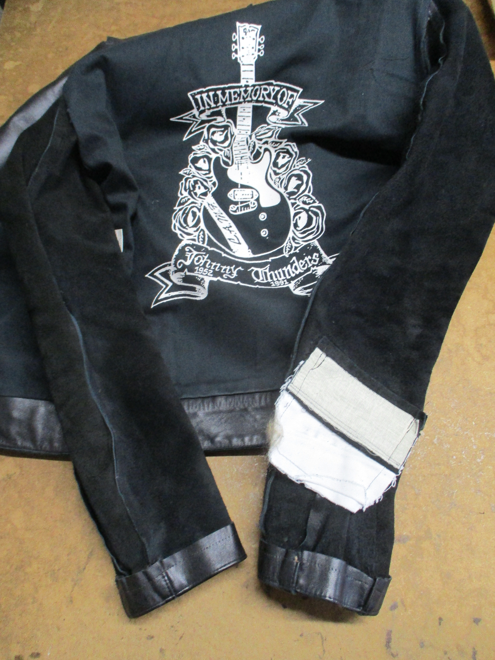1枚目は愛媛県からの郵送のお客さんの左右の袖のパーツを新しく交換していく前のライダースジャケットです。