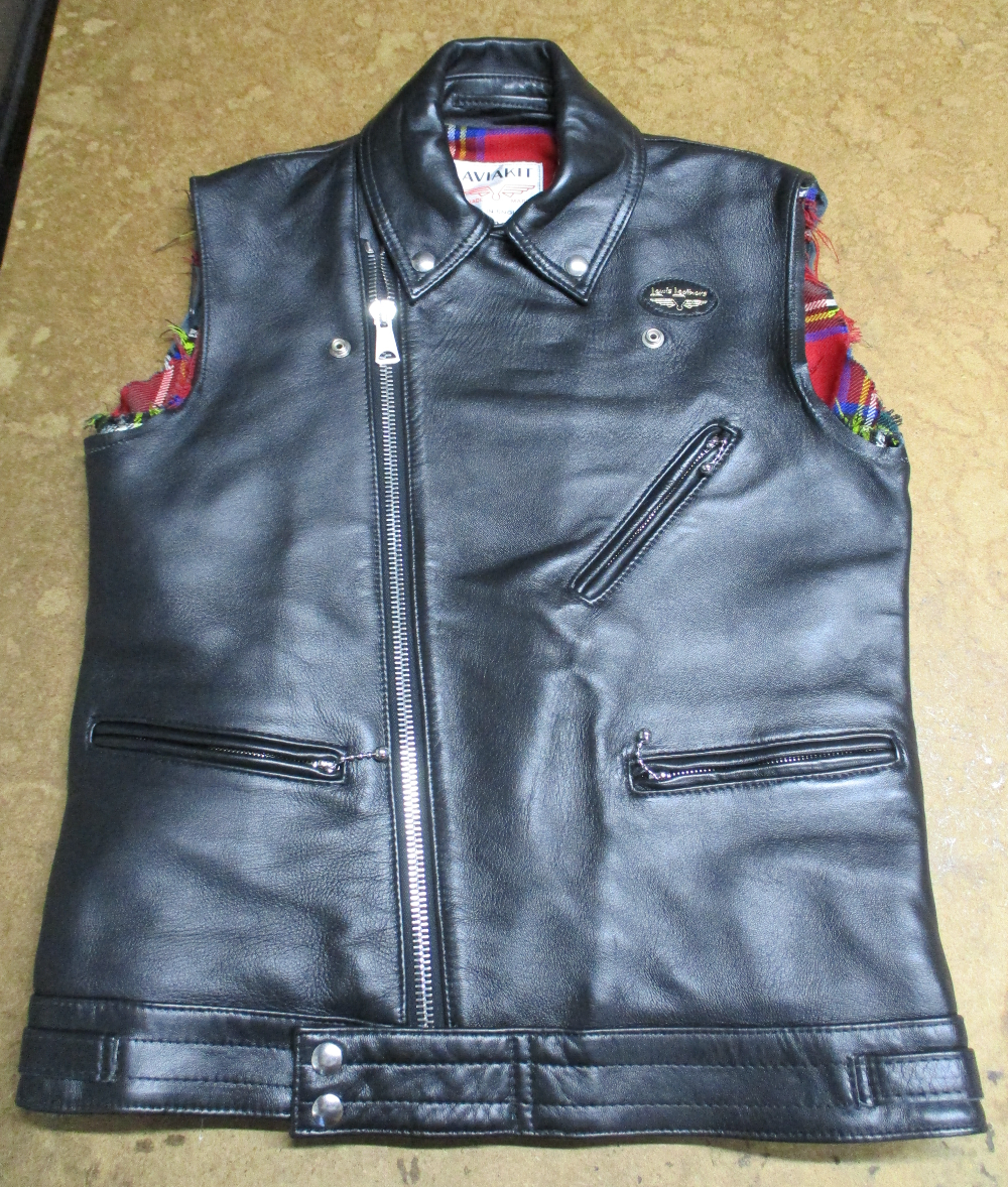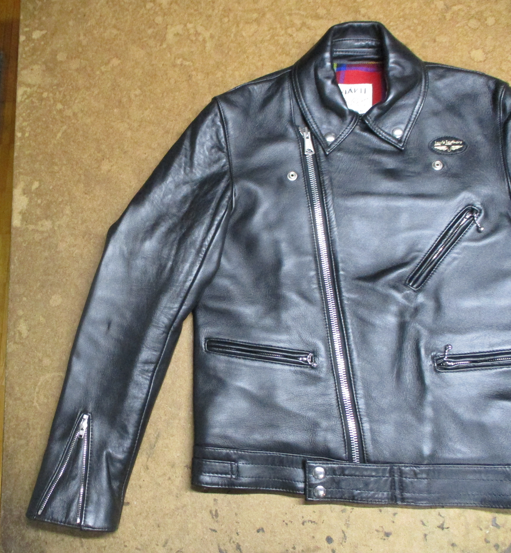 1枚目は福岡県からの郵送のお客さんの袖丈を短くしていくルイスレザーのサイクロンです。
