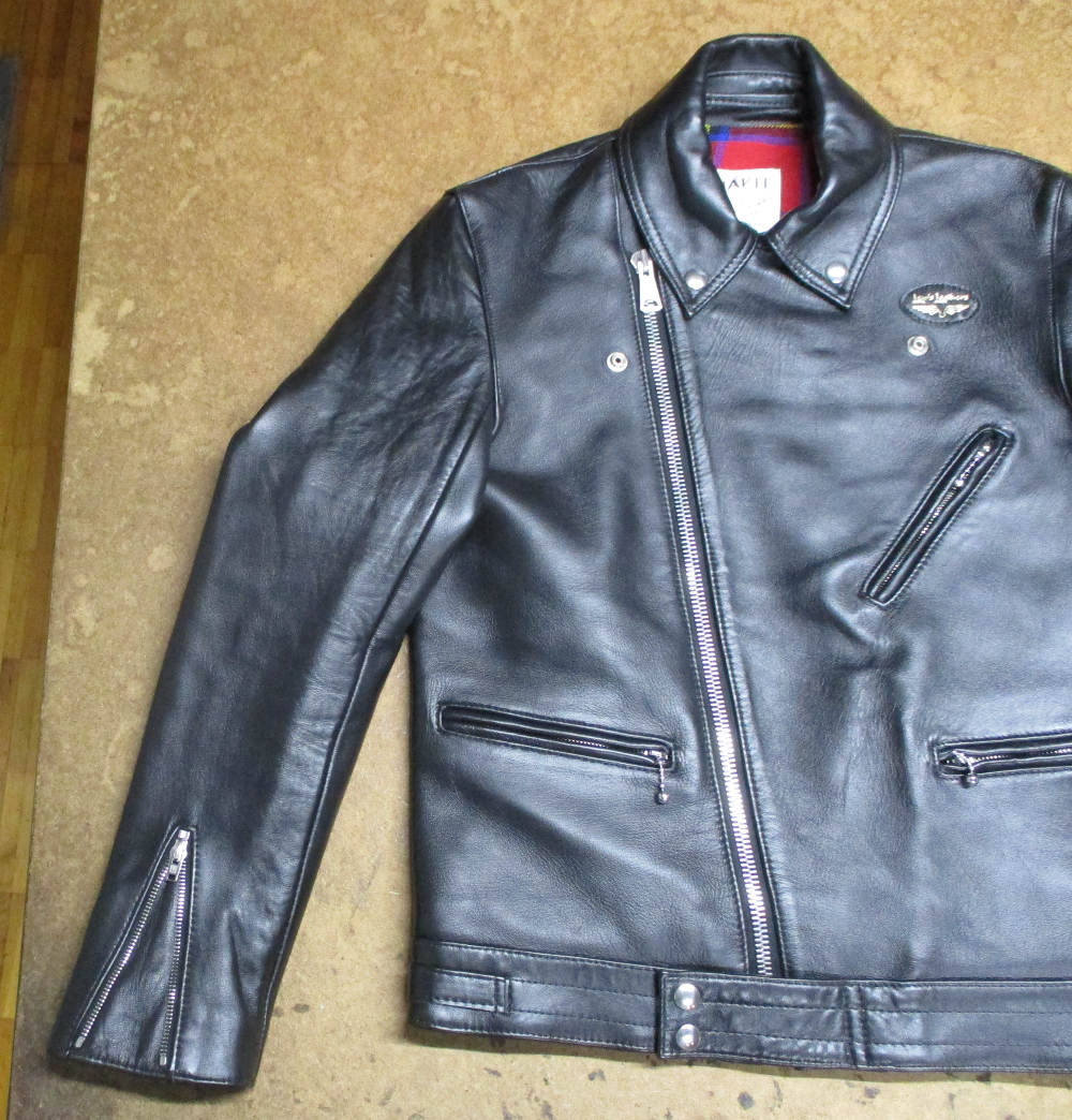 9枚目は10枚目との比較で袖丈を短くしていく前のライダースジャケットの写真です。