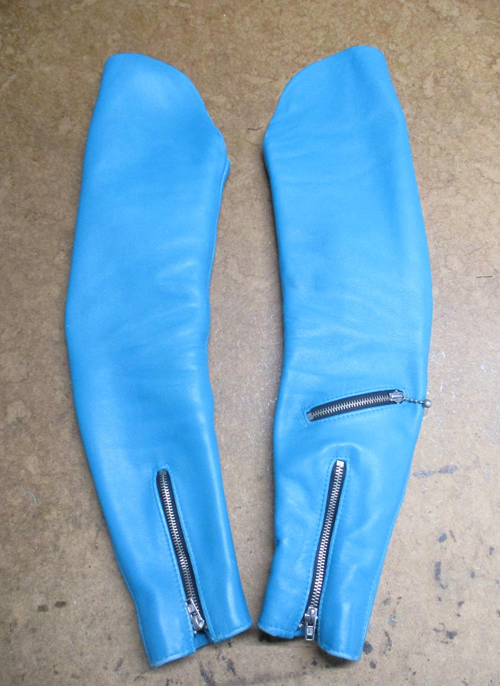 スタジャンの袖のパーツの合皮の生地を新しいものに交換